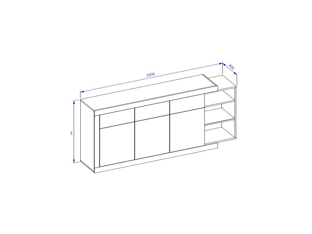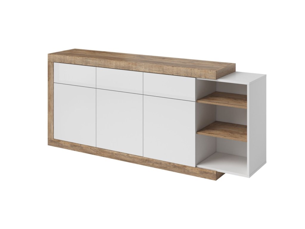 Komoda SINATRA 25 má troje dvířka, tři zásuvky a 3 odkládací police. Je jako stvořená do obývacího pokoje, kde upoutá pozornost nejednoho hosta.