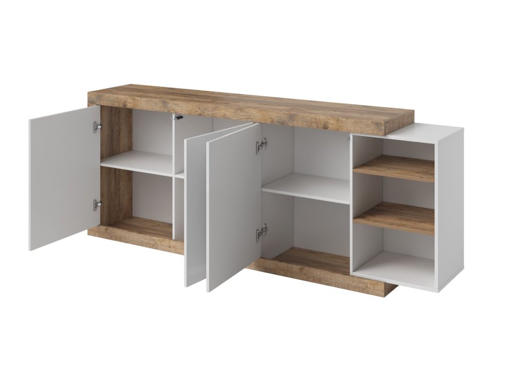 Komoda SINATRA 43 je ideální volbou pro milovníky designu. Prodloužená strana nábytku upoutá pozornost nejedné návštěvy. Komoda má dvoje dvířka a odkládací police.