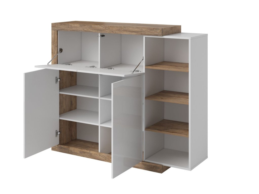 Sektorový nábytek SINATRA je určen pro lidi, kteří mají rádi spojení modernosti a elegance. Bílá lesklá dodává sektoru lehkost a ideálně se hodí k odstínu dub sambdal. Sektor má pevnou konstrukci a je vyroben z kvalitních materiálů. Systém otevírání dvířek je push to open.