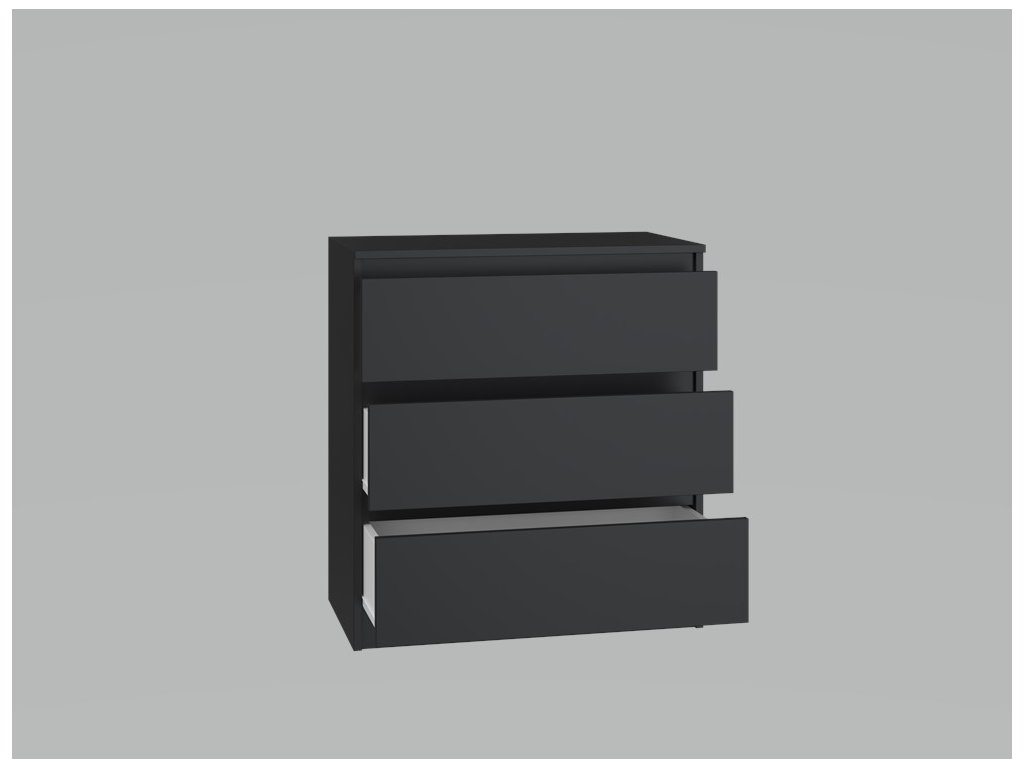 Komoda WALMA M3 v moderním designu je vhodná do každého interiéru, protože v sobě spojuje jednoduchost a eleganci. Určitě oceníte také tři praktické zásuvky, kde si můžete uložit dokumenty, oblečení nebo jiné potřebné věci. Komoda je vyrobena z kvalitní LTD desky, která je nenáročná na údržbu a odolná vůči poškrábání. Hrany jsou chráněny ABS páskou. Komoda má bezúchytový systém otevírání, takže Vám v prostoru nebudou zavazit žádné úchyty a zároveň to posílí její moderní design. Rozměry (ŠxVxH) : 70 x 75 x 40 cm >Barevné provedení : černá