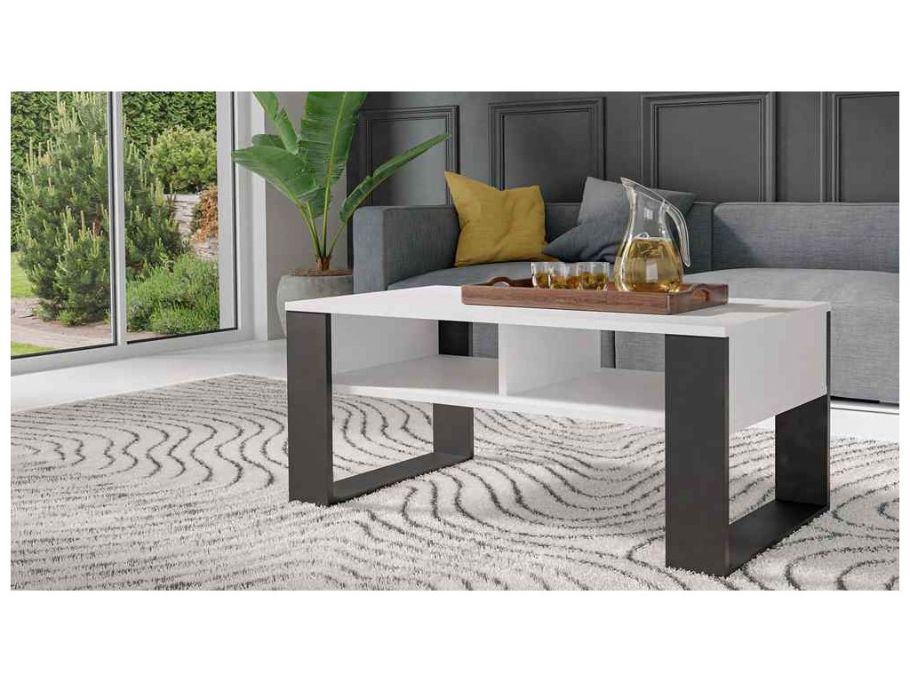 MODERN 2P - Moderní Konferenční Stolek s Regálem v Bílé a Černé Barvě