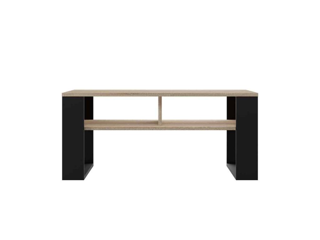 MODERN 2P - Moderní Konferenční Stolek s Regálem v Dub Sonoma a Černé Barvě