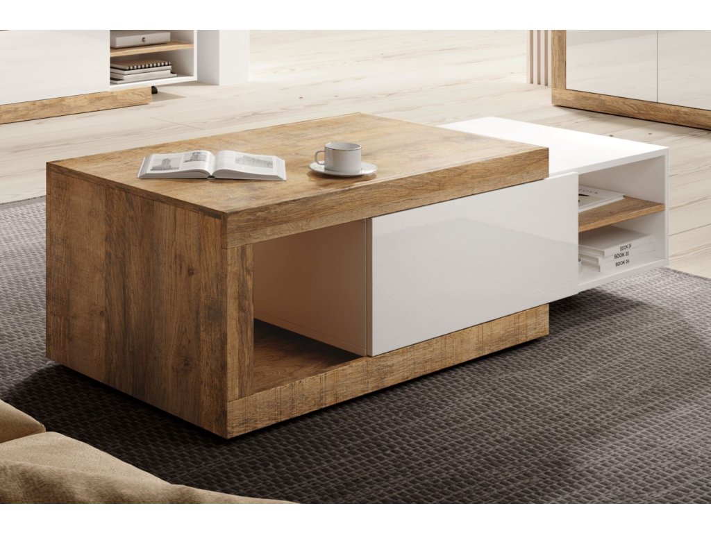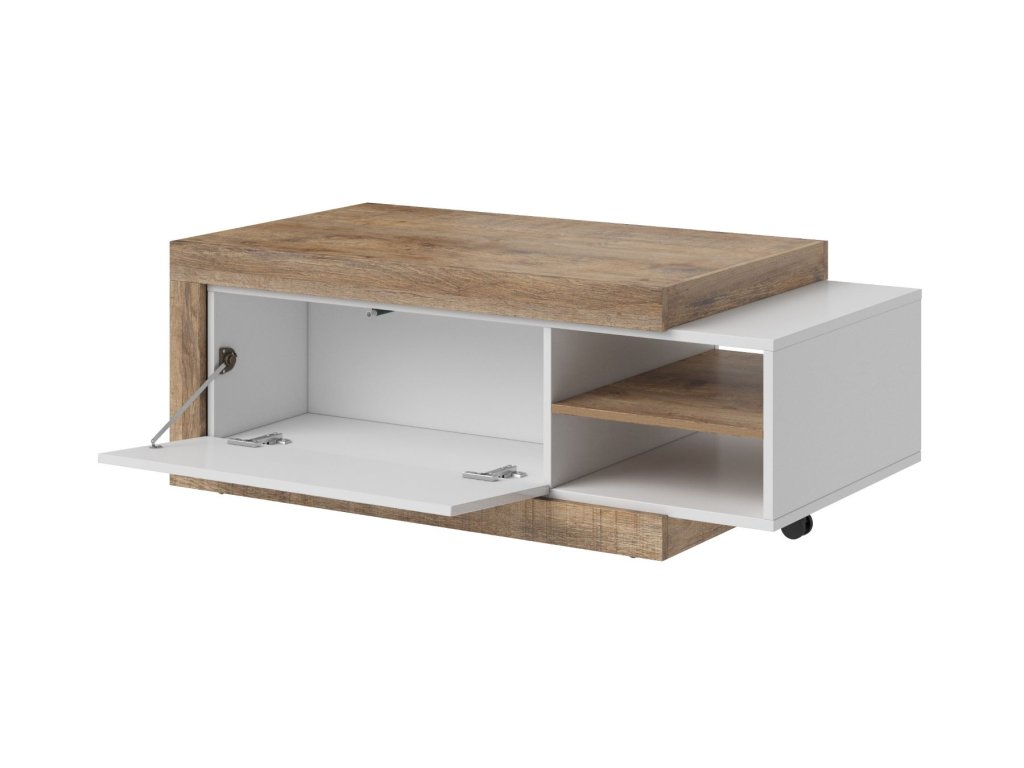 Konferenční stolek SINATRA 99 je vynikající volbou pro lidi, kteří rádi přijímají návštěvy a také pro ty, kteří rádi tráví čas o samotě u kávy. Díky možnosti roztažení zajišťuje pohodlné používání přizpůsobené individuálním potřebám každého klienta. Dvě otevřené police jsou ideálním místem pro vystavení doplňků, které dodají stolku své kouzlo. Zá výklopná dvířka si můžete uložit věci, které nechcete aby byly viditelné, což je další výhoda stolku.