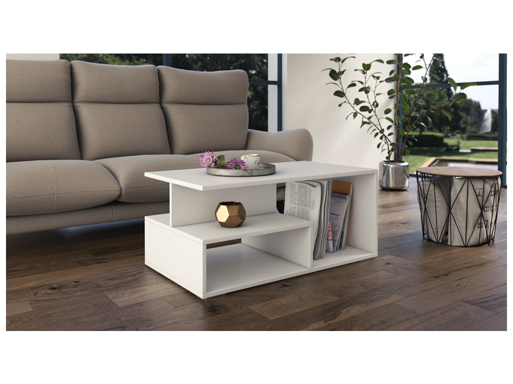 SPARKS - Konferenční Stolek s Regálkem v Čistě Bílé Barvě