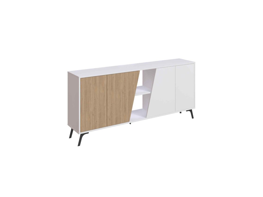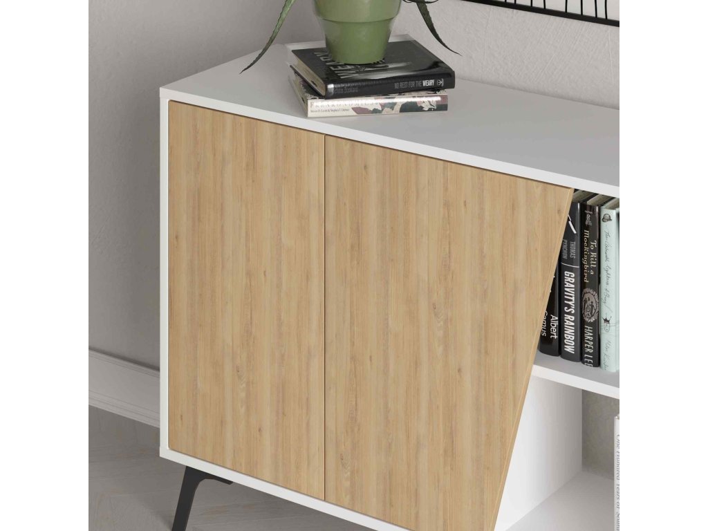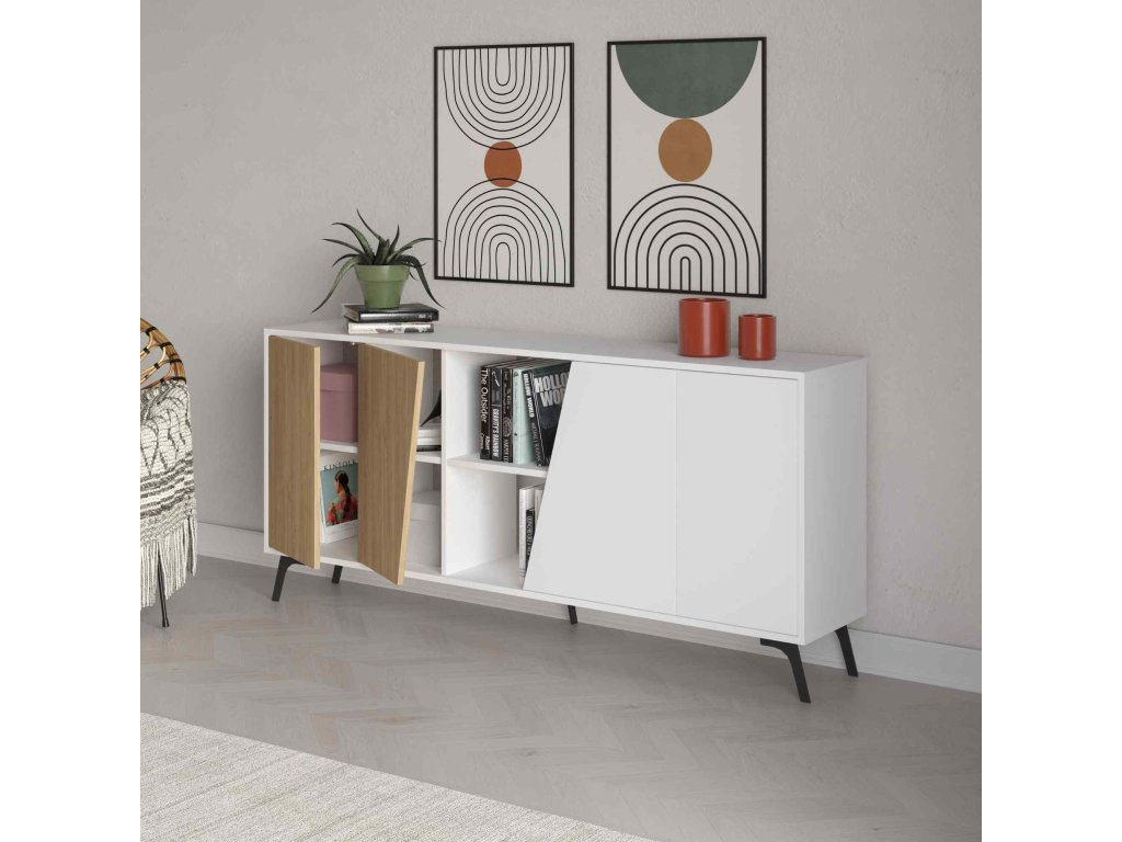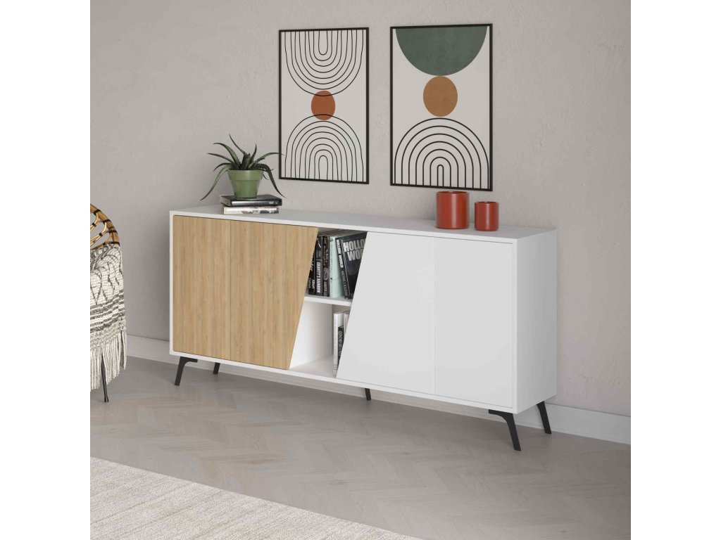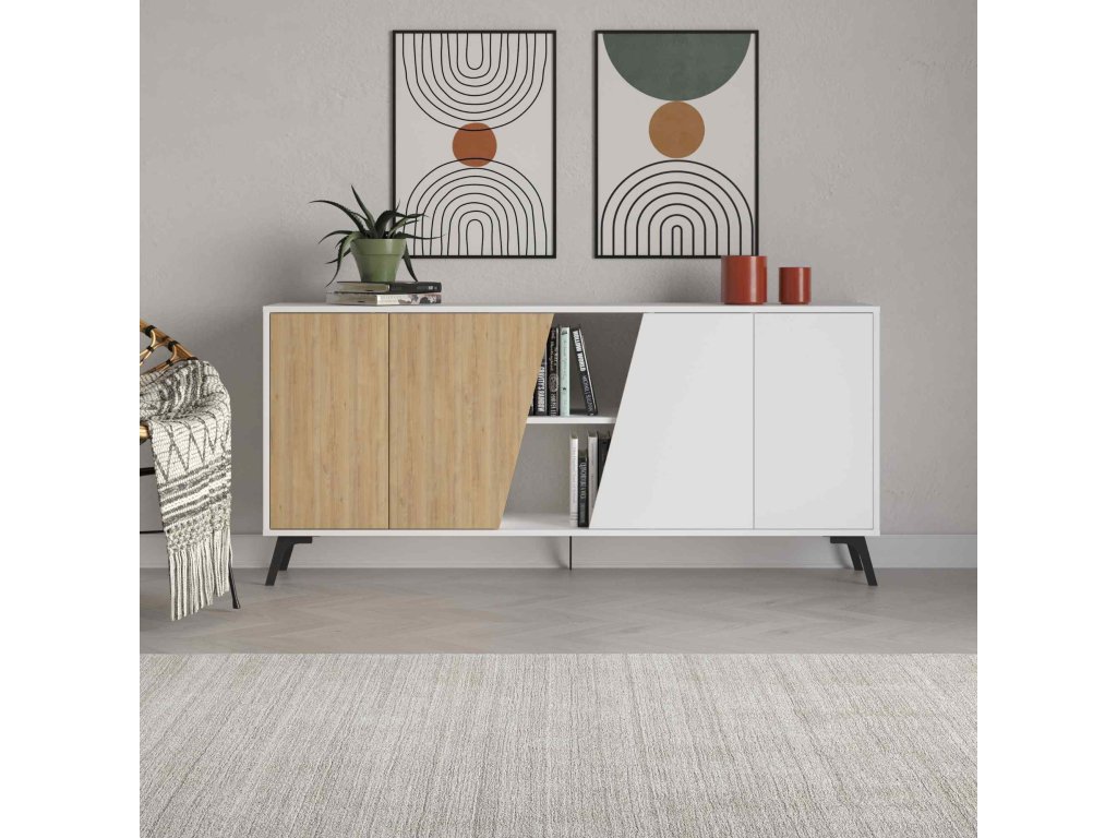 Pokud hledáte moderní a praktický nábytek, konzolový stolek LIVIA 180 v kombinaci bílé a dubové barvy je ideální volbou pro váš obývací pokoj nebo předsíň.