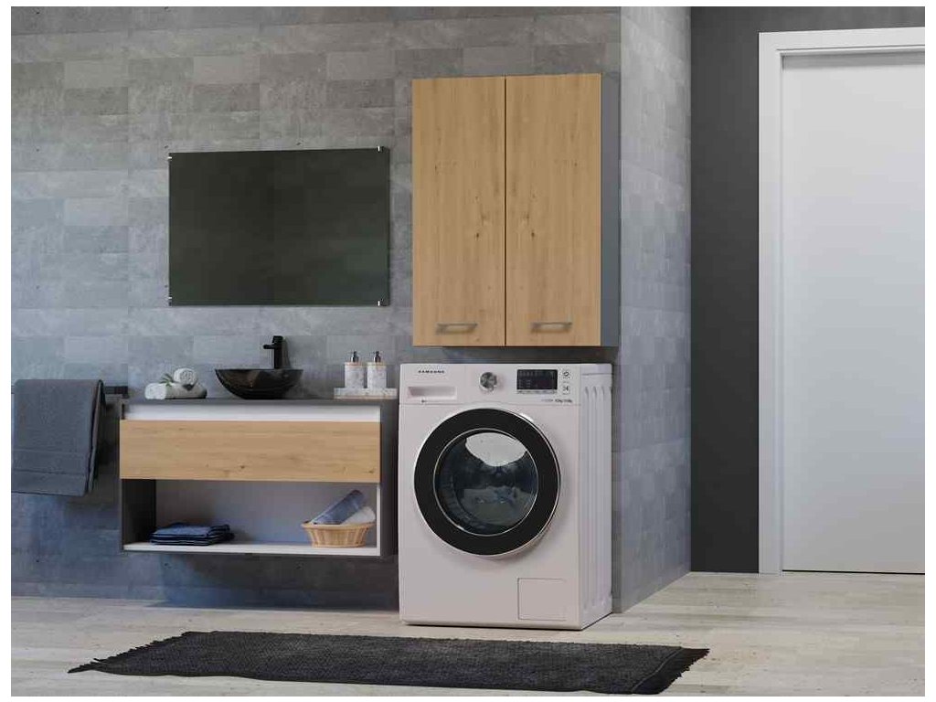Tato skříňka, vyrobená z kvalitního materiálu LTD, nabízí odolnost a snadnou údržbu. S rozměry 90 x 64 x 30 cm je dokonale vhodná i do menších koupelen. Kombinace barev antracitu a dřeva dub Artisan dodává skříňce sofistikovaný a moderní vzhled, který se snadno hodí do různých designů interiéru.