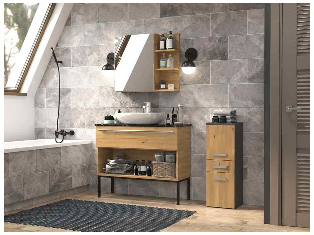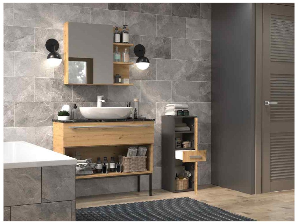 Koupelnová skříňka NEL V DDS, antracit / dub Artisan