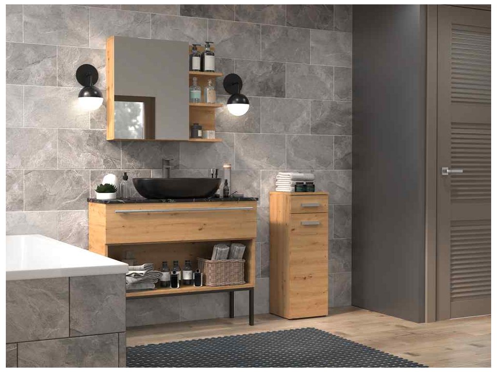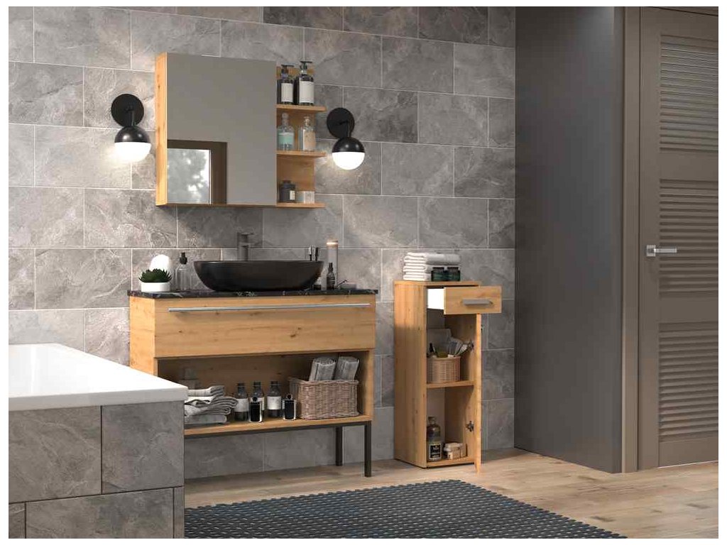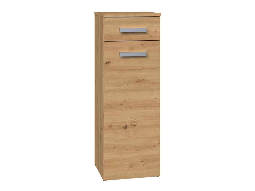 Tato koupelnová skříňka je vyrobena z kvalitního materiálu LTD a má elegantní dekor dubu Artisan, což jí dodává přírodní a luxusní vzhled. Je vybavena jedním plným dvířkem a praktickou zásuvkou, což vám umožní uložit a uspořádat vaše koupelnové potřeby tak, jak vám vyhovuje.