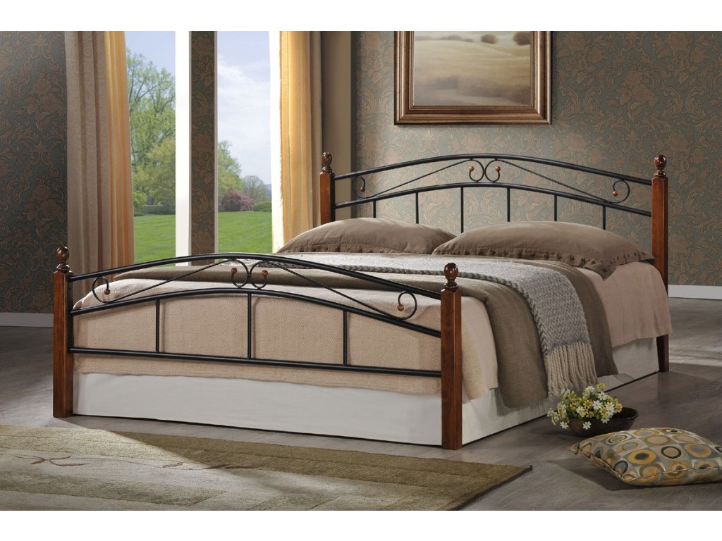 Stylová postel DOLORES v kombinaci kov a dřevo. Nožičky jsou z masivního dřeva v barevném provedení třešeň antická. Kovové části postele jsou černé. Zvýšené zadní i přední čílko. Součástí postele je lamelový rošt - lamely jsou vsazeny do kovového rámu postele. Výška roštu od země je cca 28 cm. Matraci je však třeba doobjednat, doporučujeme velikost 180x200 nebo dva kusy 90x200 cm. Rozměr postele (v/š/h) 91.5 x 185 x 211 cm. Nosnost postele je 180kg. Dodáváme v demontu.Doplňkové parametry