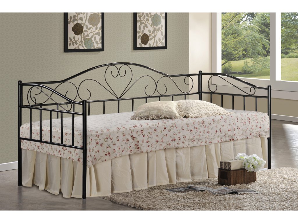 Designová kovová postel PALAWAN II je vhodná do dívčích a studentských pokojů. Kovová konstrukce je s dekoračními prvky. Černé barevné provedení. Rozměr (v/š/h) 97 x 208 x 96 cm. Rošt je ve výšce cca 35 cm od země. Součástí postele je také lamelový rošt. Rošt je ve výšce cca 27,6 cm od země. Matraci je třeba dokoupit, doporučujeme velikost 90 x 200. Nosnost postele je 120 kg. Ke posteli doporučujeme noční stolek ET-747. Dodáváme v demontu. Objednací kód: VER-0380Doplňkové parametry