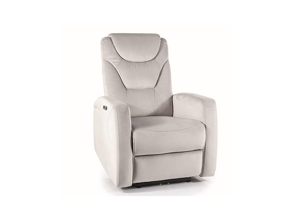 Křeslo je elektricky polohovatelné. Je čalouněno kvalitní sametovou látkou Bluvel 03 ve světle šedém barevném provedení. Úchyt pro manipulaci s křeslem najděte na opěrce.