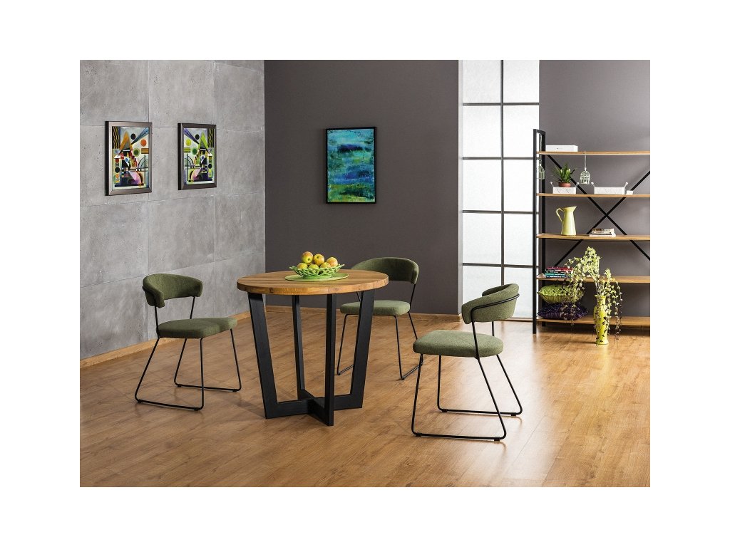 Moderní kulatý jídelní stůl z přírodního dubového dřeva v barvě dub. Konstrukce stolu je kovová v černé barvě. Stůl je vhodný do interiérů zařízených ve stylu loft. Rozměry (výška/průměr v cm): 78/90. V naší nabídce naleznete i další podobné stoly. Dodáváno v demontu.Doplňkové parametry
