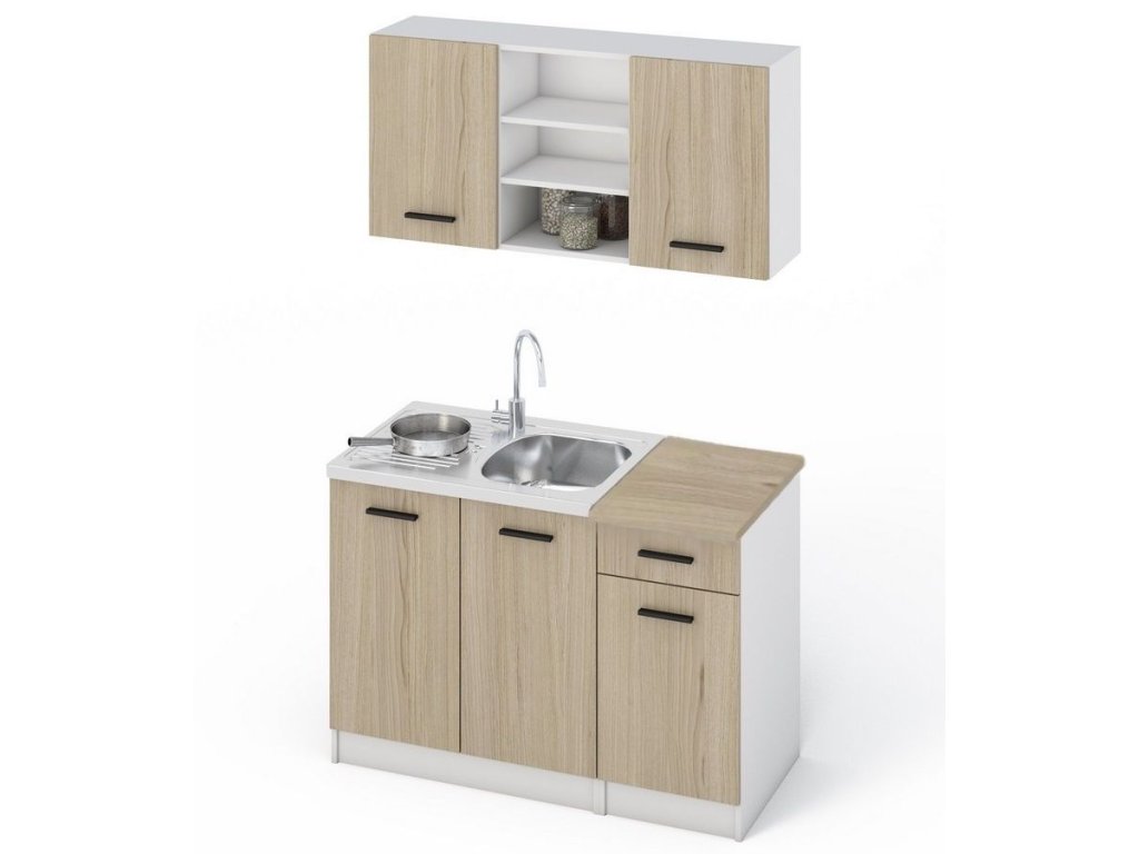 Jednoduchá kuchyňská linka JANKA 120 má atraktivní provedení korpus bílá/dvířka dub sonoma. Materiál LTD je jednoduchý na údržbu.