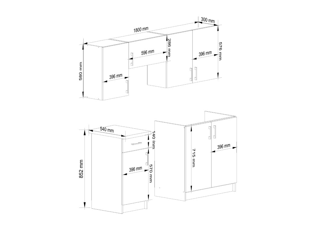 Kuchyňská linka APOLON180, bílá / dub Sonoma