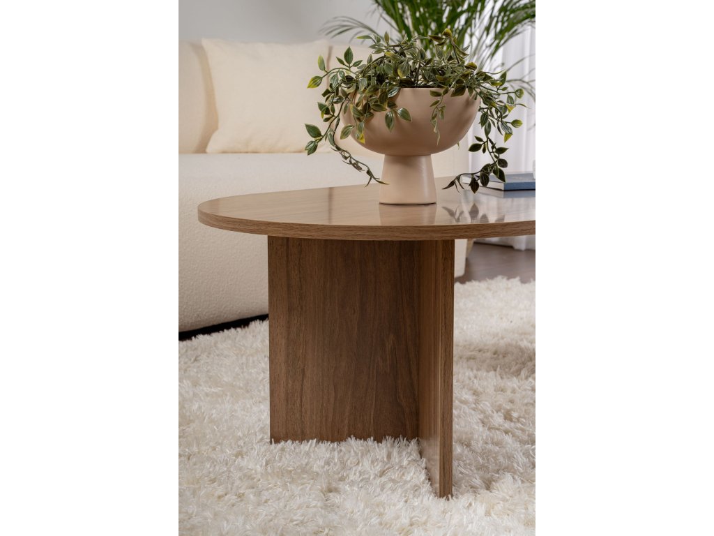 Dřevotřísková deska s 100% melaminovým povlakem použitá v tomto konferenčním stolku zajišťuje hladký a odolný povrch, který se snadno čistí a udržuje. Tloušťka 18 mm zvyšuje jeho robustnost, díky čemuž je spolehlivým kusem nábytku pro váš domov. Barva ořechu dodává nádech tepla a sofistikovanosti, díky čemuž je všestranným kusem nábytku, který doplní jakýkoli styl interiéru.