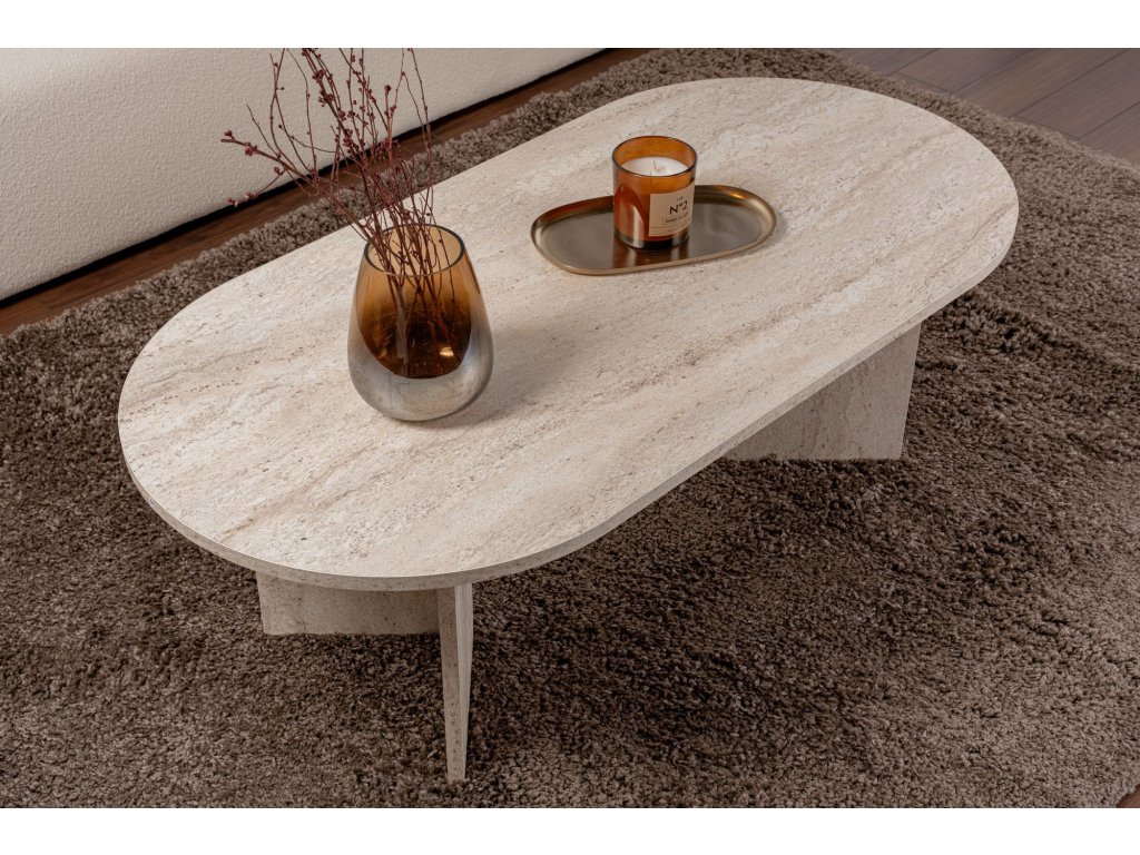 S šířkou 119 cm, výškou 40 cm a hloubkou 60 cm nabízí tento konferenční stolek dostatek prostoru pro vaše nápoje, občerstvení a dekorační předměty. Travertinová barva dodá vašemu prostoru nádech tepla a bohatosti a stane se tak perfektním ústředním bodem vašeho obývacího pokoje.