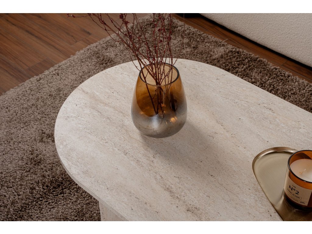 Proměňte svůj obývací pokoj v luxusní oázu s naším úžasným konferenčním stolkem z travertinového mramoru. Tento nádherný kousek pozvedne atmosféru vašeho prostoru a dodá mu nádech elegance a sofistikovanosti.