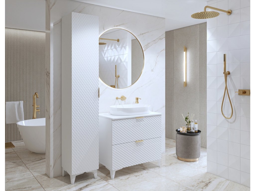 Sestava obsahuje: | skříňka do koupelny - rozměry (š,v,h): 35 x 186 x 35 cm skříňka pod umyvadlo - rozměry (š,v,h): 80 x 63 x 49 cm 4ks nožičky - 12 cm |