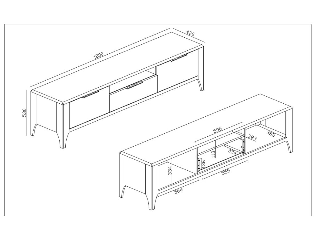 Komoda disponuje jedním prostorným šuplíkem a dvěma skříňkami, které poskytují dostatek úložného prostoru pro vaši elektroniku, DVD, knihy či další předměty. Rozměry komody jsou výška 53 cm, šířka 180 cm a hloubka 42 cm, což zajišťuje dostatek prostoru pro umístění i velkých televizorů.