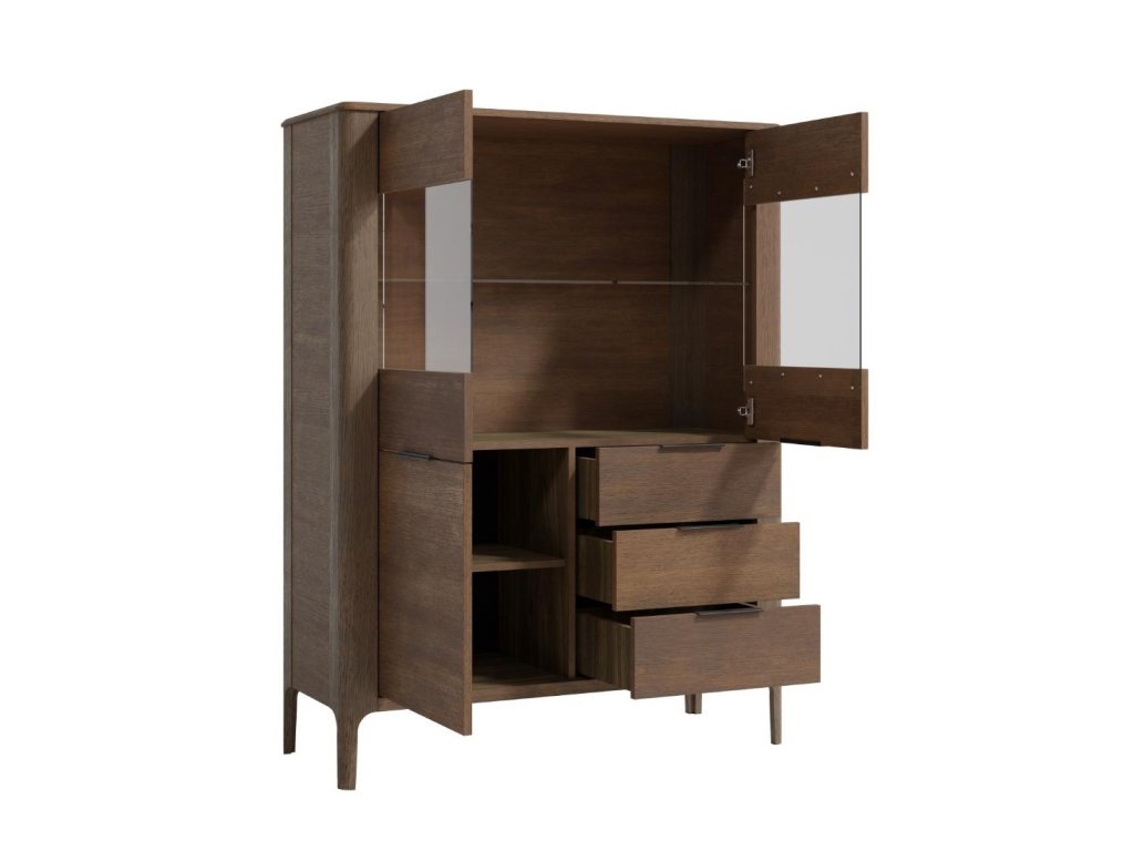 Vysoká komoda LAKE je skvělou volbou pro váš interiér, která nabízí eleganci i funkčnost. Tato komoda je vyrobena z masivního dubového dřeva v barvě tmavého ořechu, což jí dodává sofistikovaný a nadčasový vzhled.