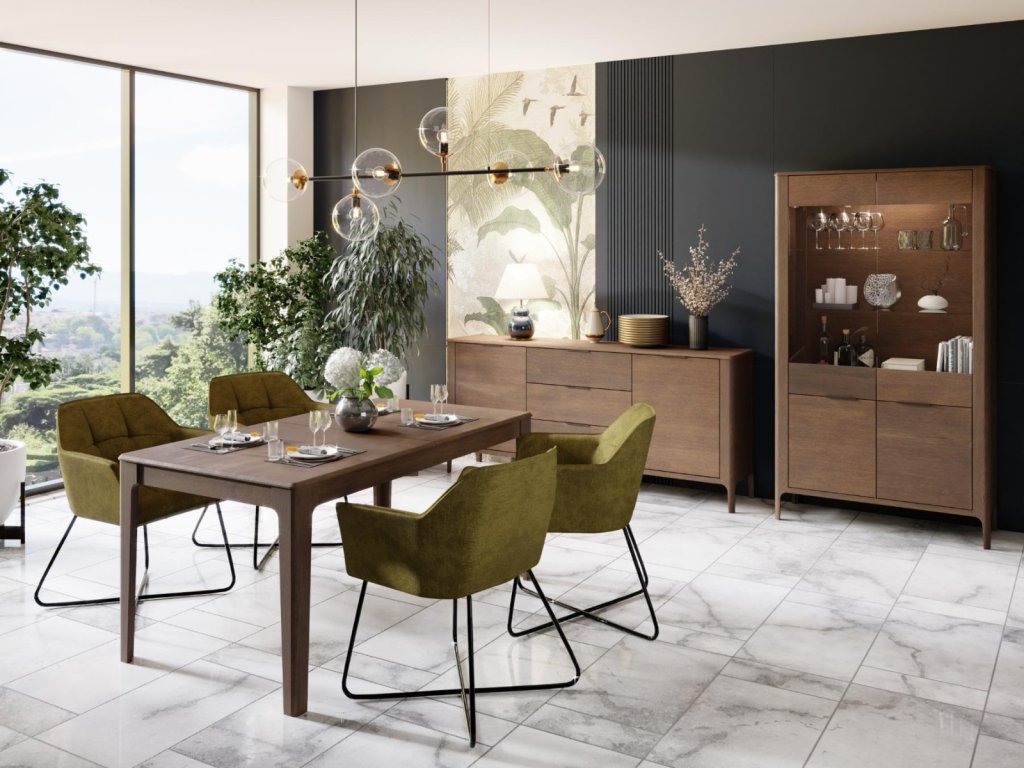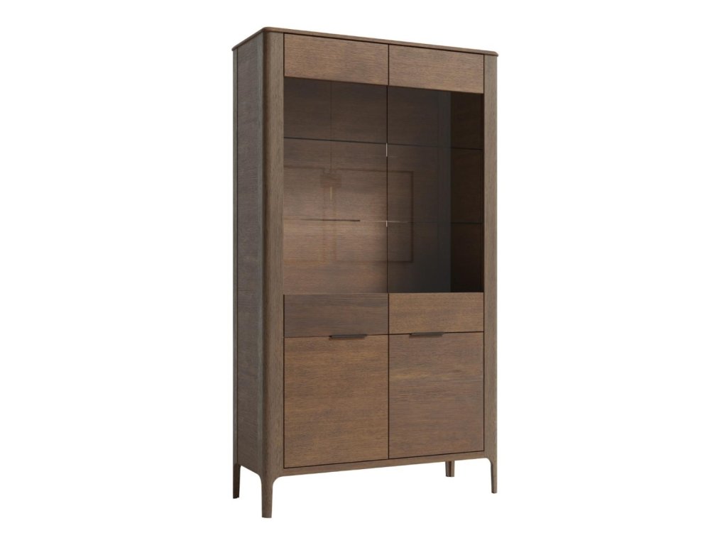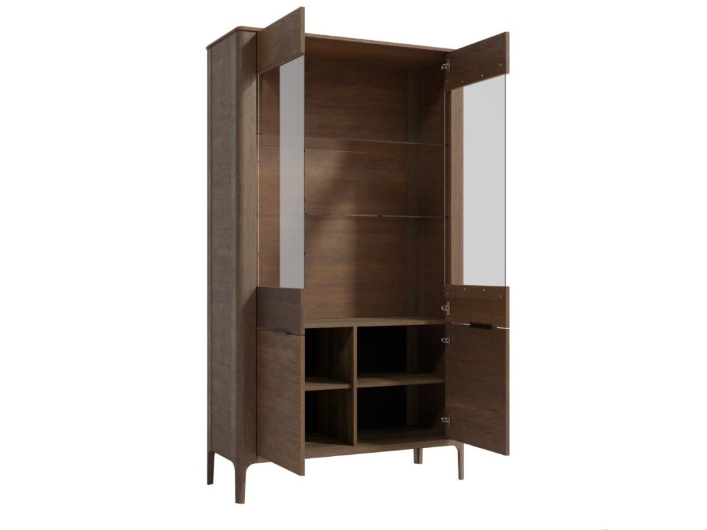 Vysoká vitrína LAKE je ideálním doplňkem pro váš domov, který kombinuje eleganci a funkčnost. Tato vitrína je vyrobena z masivního dubové dřeva v barvě tmavého ořechu, což jí dodává sofistikovaný a nadčasový vzhled.