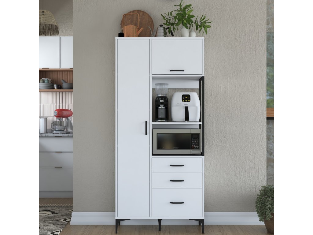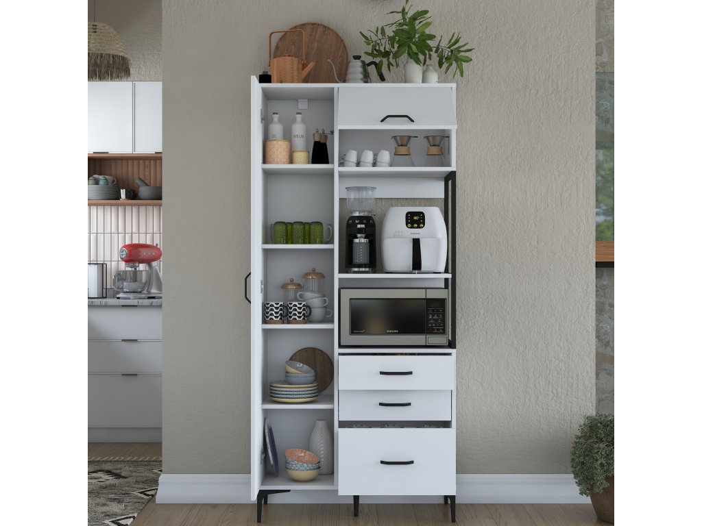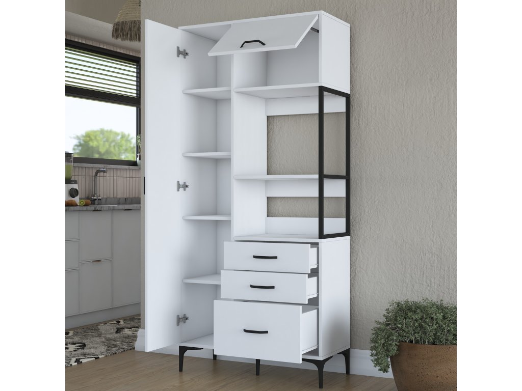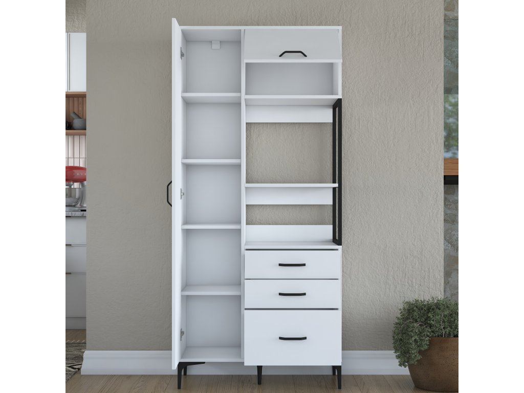 Policová skříň LAMB je elegantním a víceúčelovým řešením pro vaši kuchyni. Díky vysoké konstrukci, čistě bílému designu a skandinávskému stylu přináší moderní vzhled a dostatek úložného prostoru pro všechny vaše potřeby. Je ideální pro uložení kuchyňského náčiní, potravin nebo dalších předmětů, které potřebujete mít na dosah.