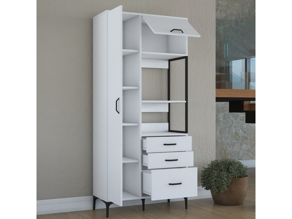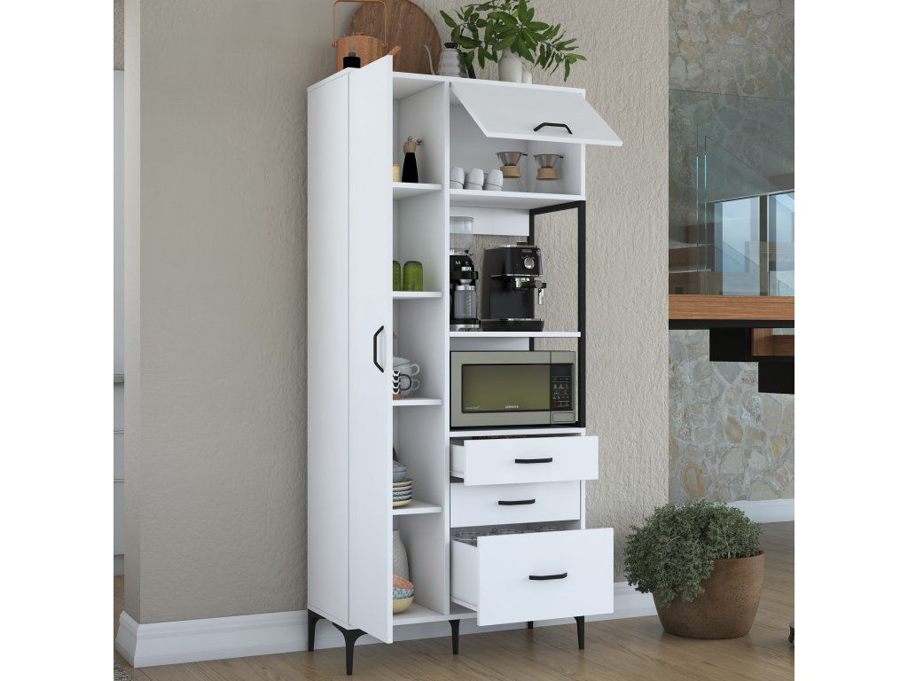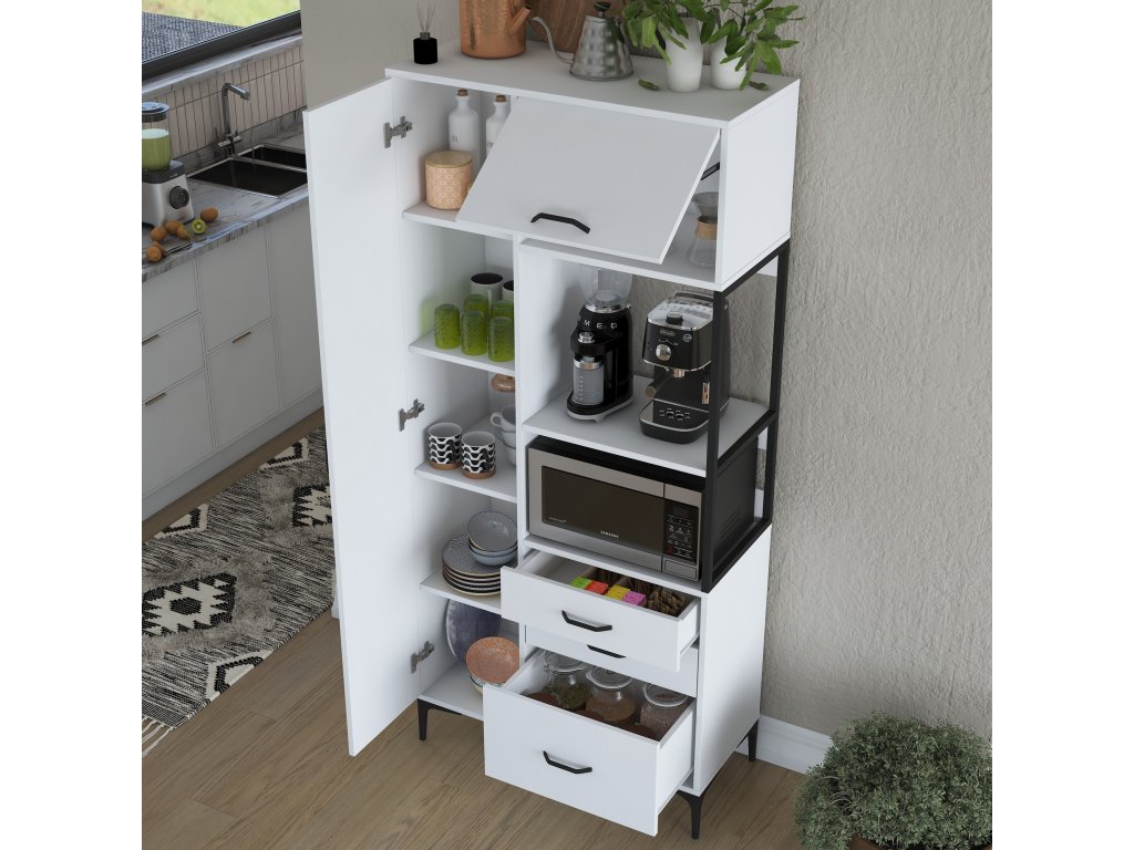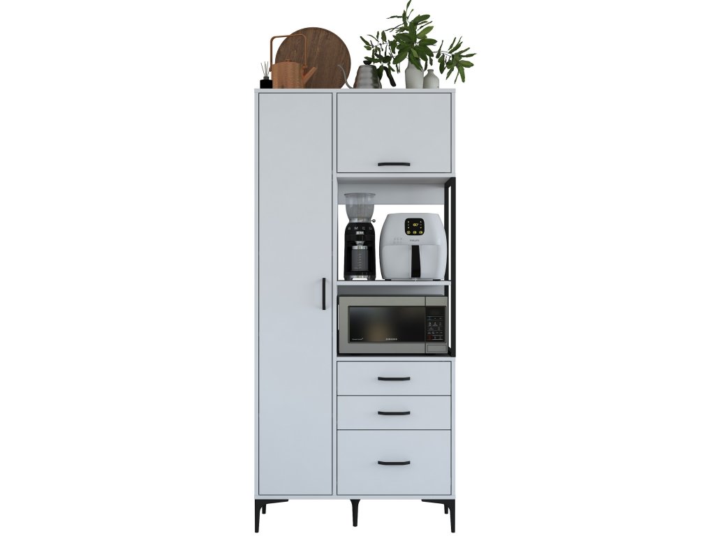 Policová skříň LAMB je elegantním a víceúčelovým řešením pro vaši kuchyni. Díky vysoké konstrukci, čistě bílému designu a skandinávskému stylu přináší moderní vzhled a dostatek úložného prostoru pro všechny vaše potřeby. Je ideální pro uložení kuchyňského náčiní, potravin nebo dalších předmětů, které potřebujete mít na dosah.