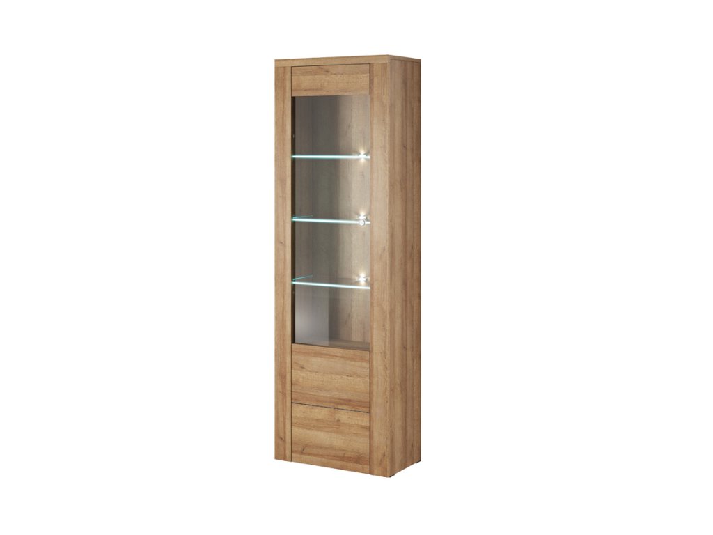 Nábytek LANA je nábytek moderního vzhledu, který vám pomůže vytvořit si domov, po kterém toužíte. Dokonalý design mu dodávají ostré hrany a barevné provedení dub riviera. Vitrína LANA 05 svým jednoduchým a elegantním vzhledem, bude vynikat právě ve vašem obývacím pokoji. Poslouží Vám k uložení sklenic případně designových nebo dárkových předmětů. Doporučujeme dokoupit LED osvětlení, viz doporučení. Je vyrobena ze snadno udržovatelné a kvalitní LTD desky. Vitrína je jednodvéřová s jemnou úchytkou elegantního stříbrného vzhledu. Rozměry: - šířka: 65 cm, - výška: 206 cm, - hloubka: 37cm. Dodáváme v demontu, přičemž montáž je jednoduchá.Doplňkové parametry