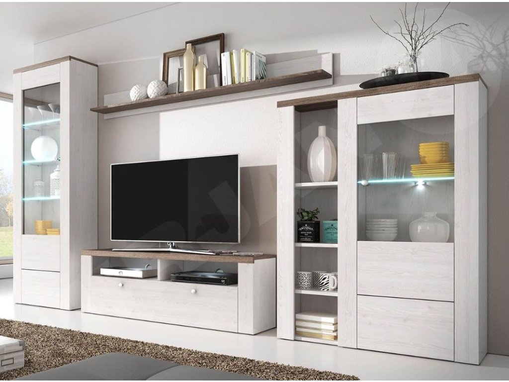 | Sestava obsahuje: | Vitrína 65/206/37, TV stolek 140/49/37, police 180/20/21, komoda s policemi 100/145/37 cm. |