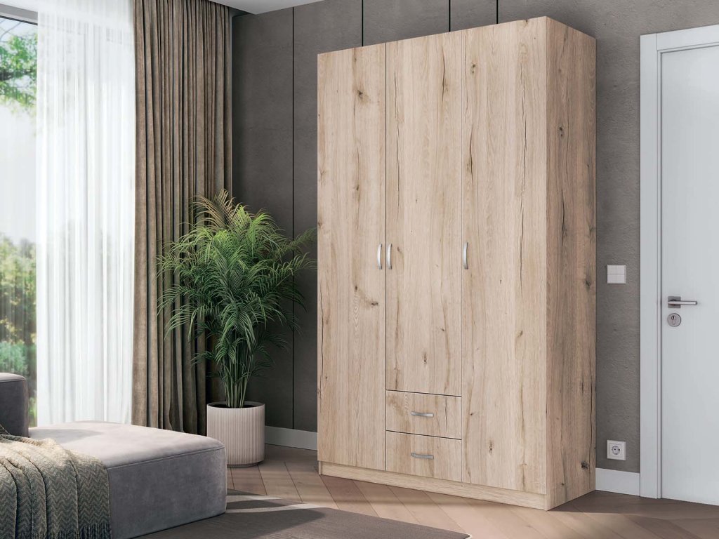 LANDO třídveřová šatní skříň, dub Raya