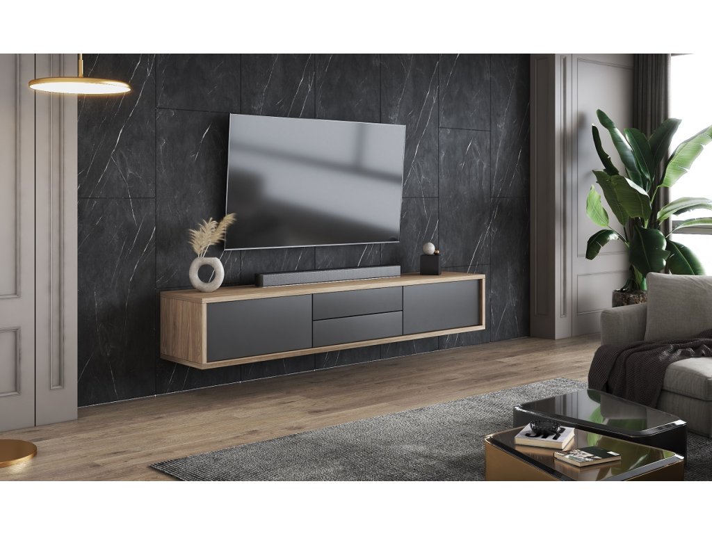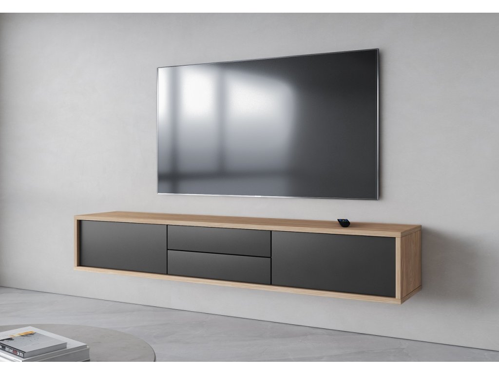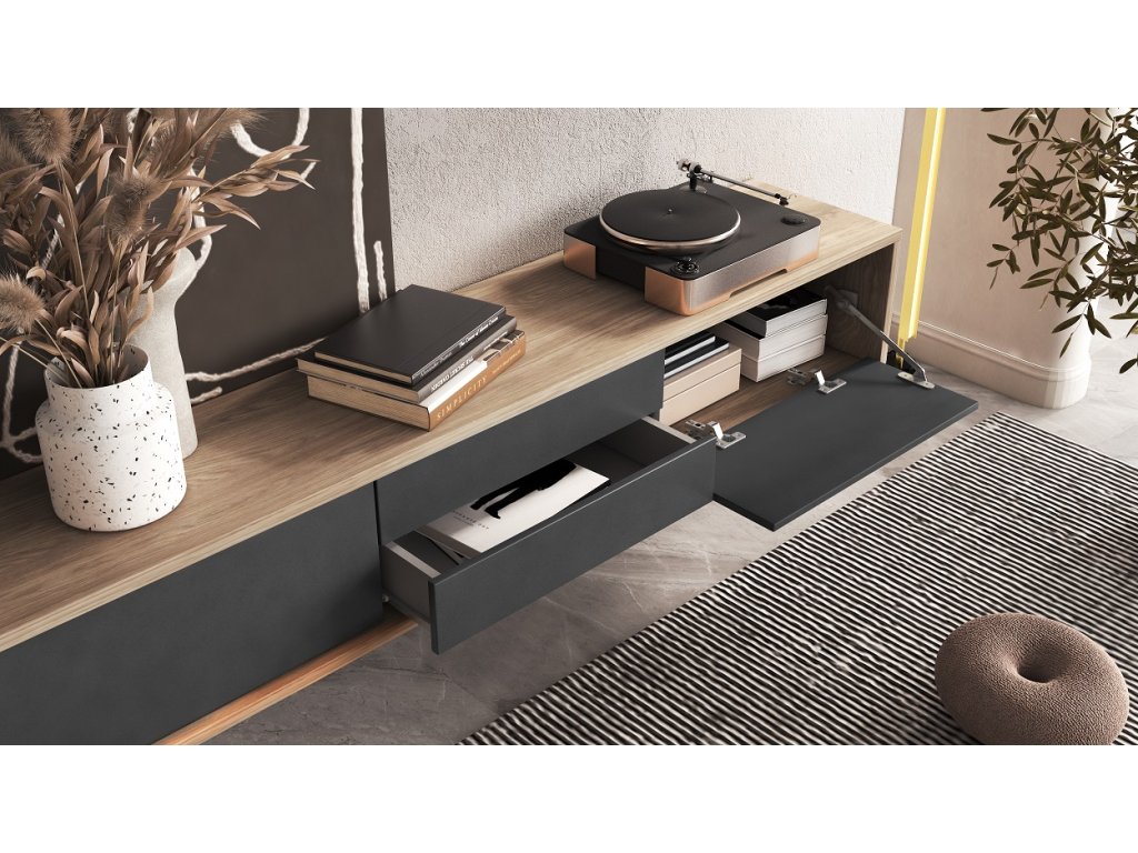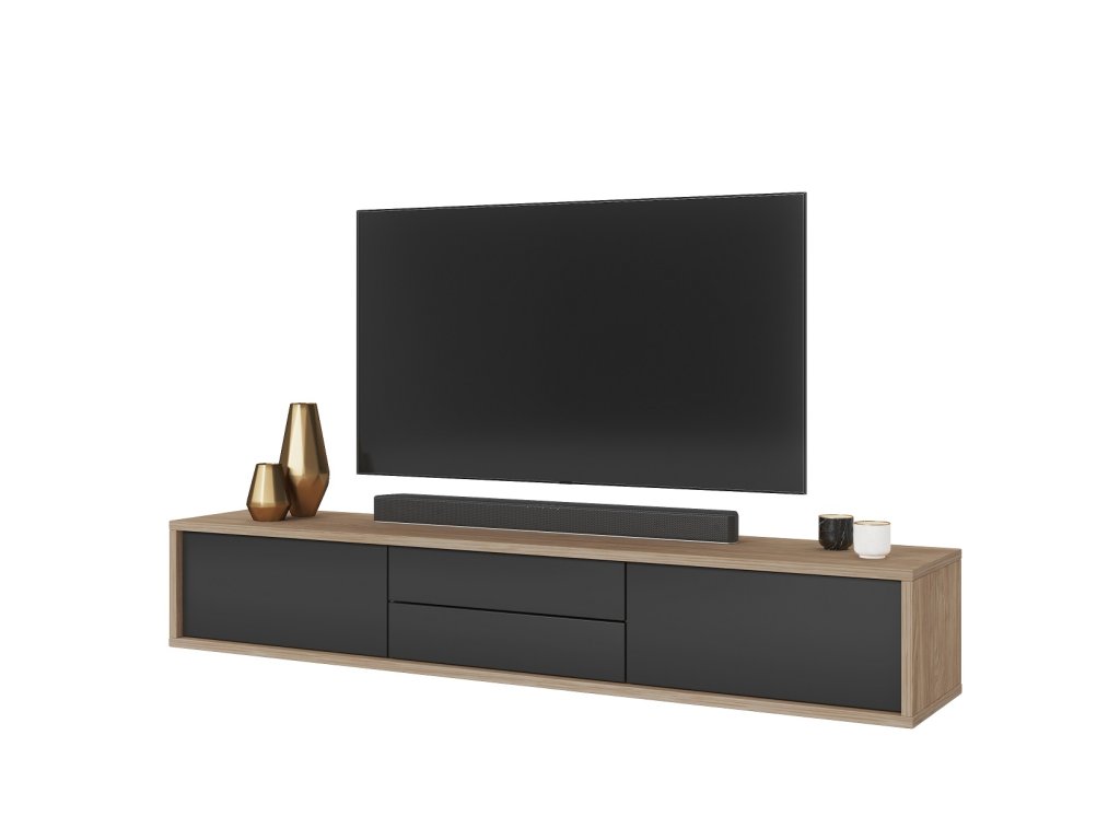 TV stolek je vyroben z kvalitních LTD desek, které se snadno udržují. TV stolek diposnuje dvěma výklopnými přihrádkami a dvěma praktickými zásuvkami.