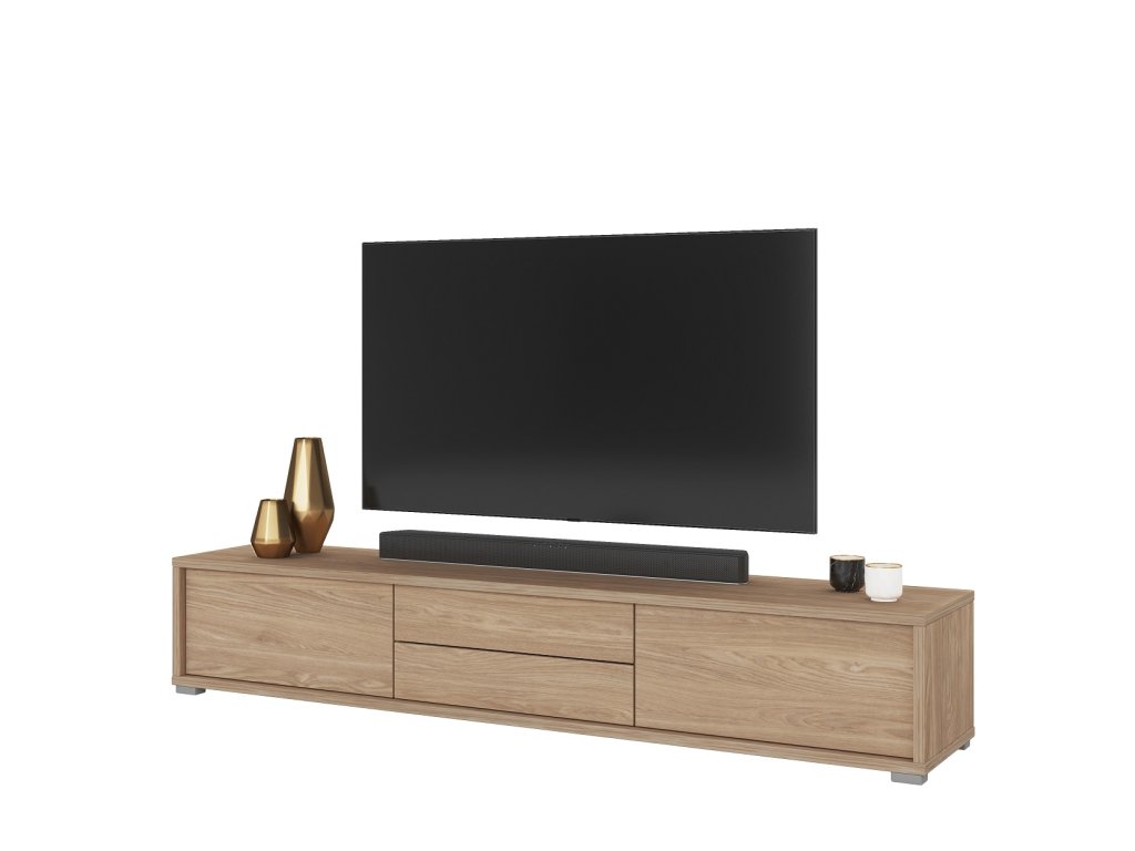TV stolek je vyroben z kvalitních LTD desek, které se snadno udržují. TV stolek diposnuje dvěma výklopnými přihrádkami a dvěma praktickými zásuvkami.
