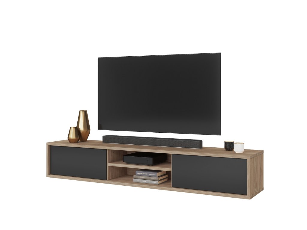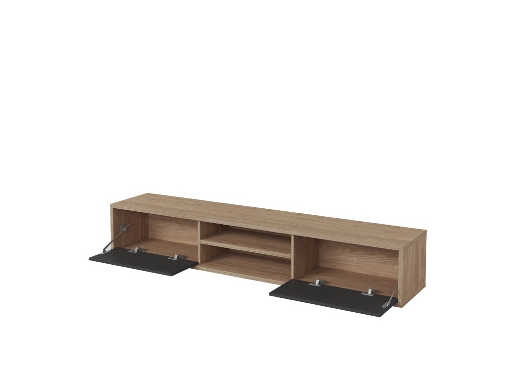 TV stolek je vyroben z kvalitních LTD desek, které se snadno udržují. TV stolek diposnuje dvěma výklopnými přihrádkami a dvěma otevřenými přihrádkami.