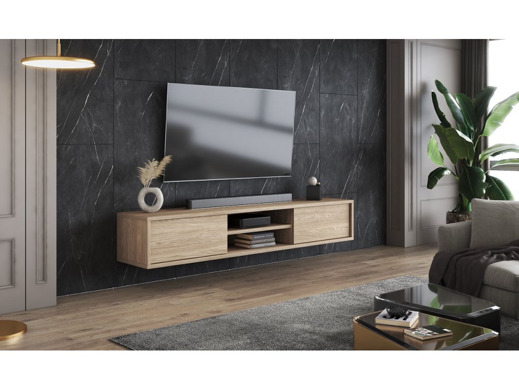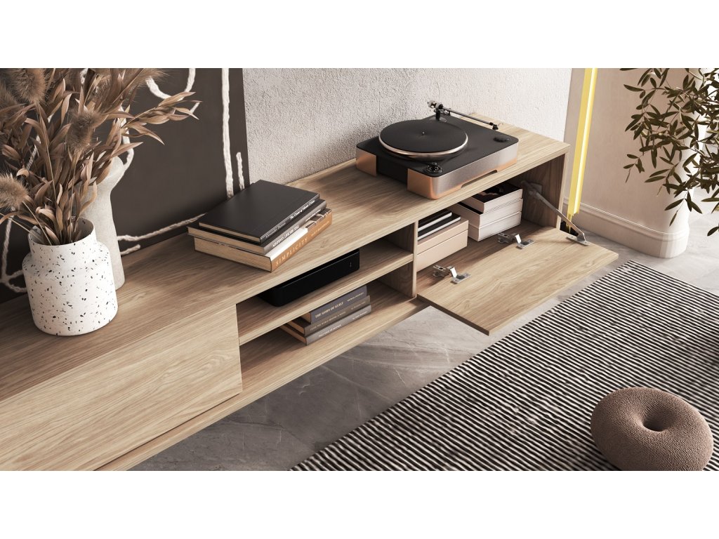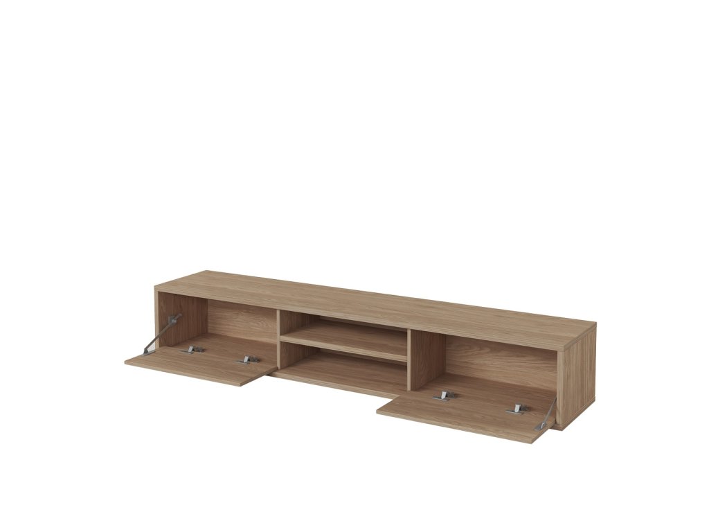 TV stolek je vyroben z kvalitních LTD desek, které se snadno udržují. TV stolek diposnuje dvěma výklopnými přihrádkami a dvěma otevřenými přihrádkami.