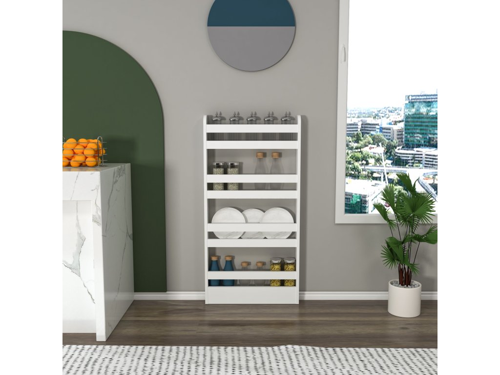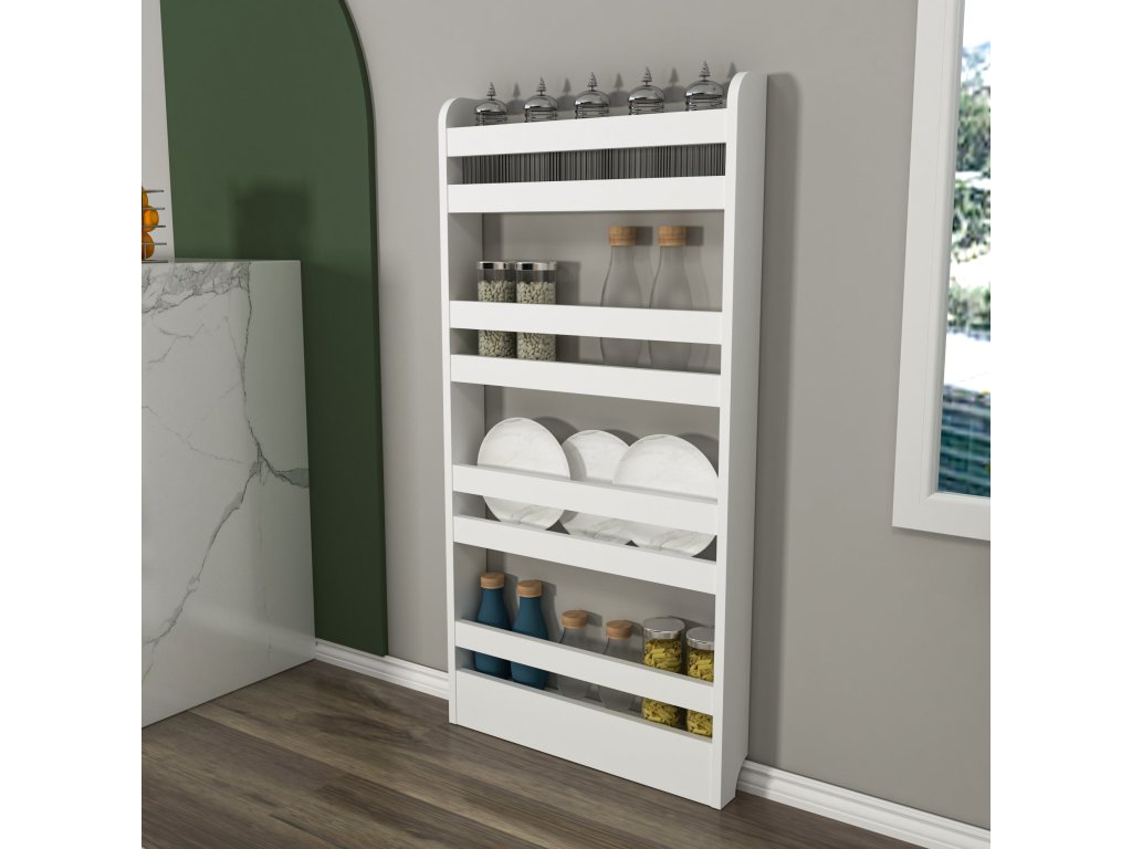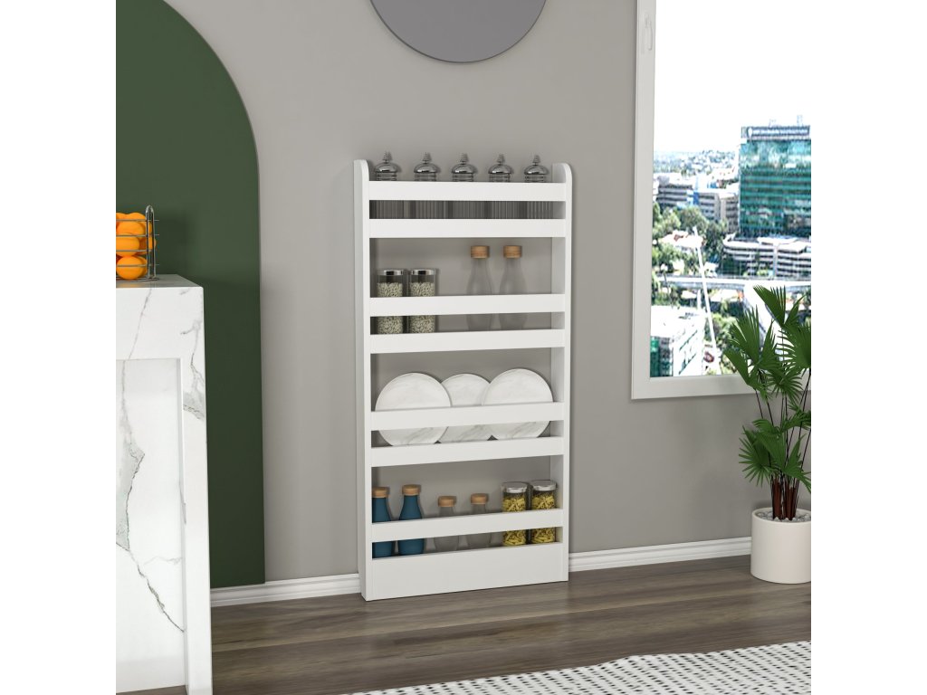 Regál do kuchyně LANSING je ideální volbou pro efektivní uspořádání vaší kuchyně. Díky čtyřem policím nabízí dostatek prostoru pro skladování kuchyňských potřeb, koření, nádobí nebo dekorací. Jeho moderní design a univerzální provedení zajišťují, že snadno zapadne do jakéhokoli kuchyňského interiéru.