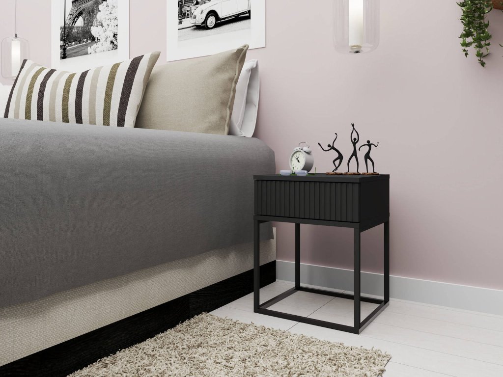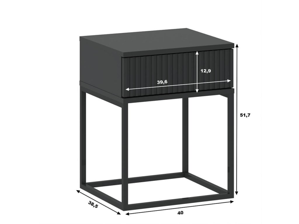 Originální noční stolek s kovovou konstrukcí zaujme nejednoho uživatele. Je vyroben z kvalitních LTD desek s ABS hranami. Je nenáročný na údržbu. Noční stolek disponuje jednou praktickou zásuvkou.