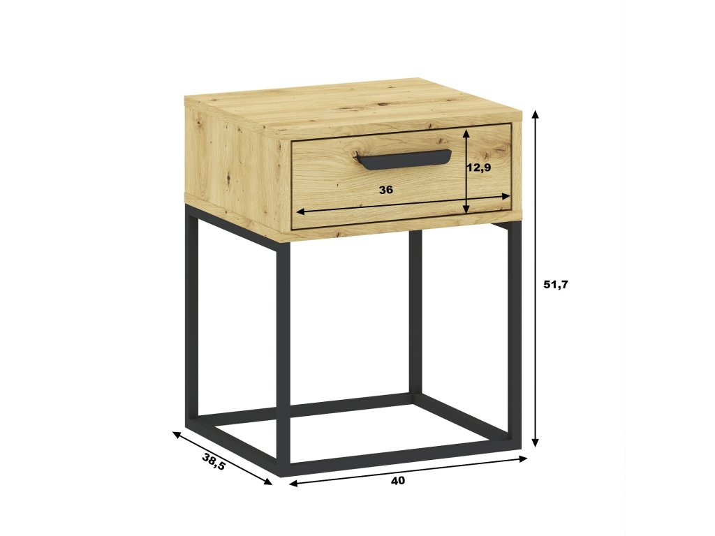 Originální noční stolek s kovovou konstrukcí zaujme nejednoho uživatele. Je vyroben z kvalitních LTD desek s ABS hranami. Je nenáročný na údržbu. Noční stolek disponuje jednou praktickou zásuvkou.