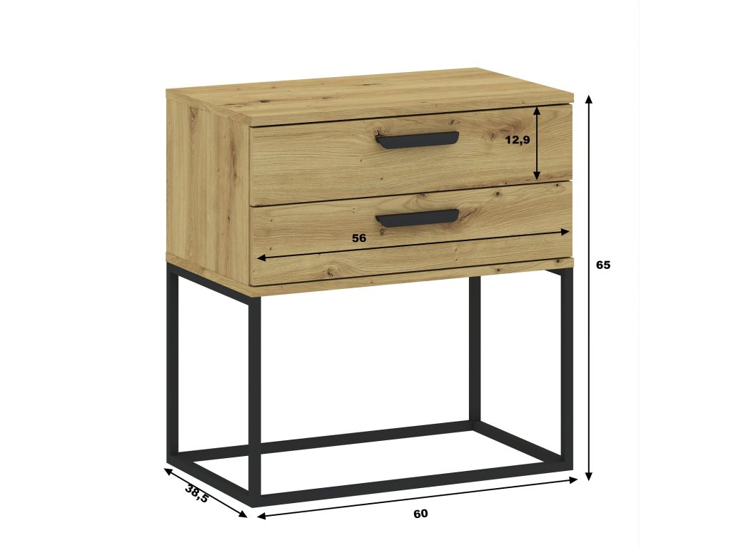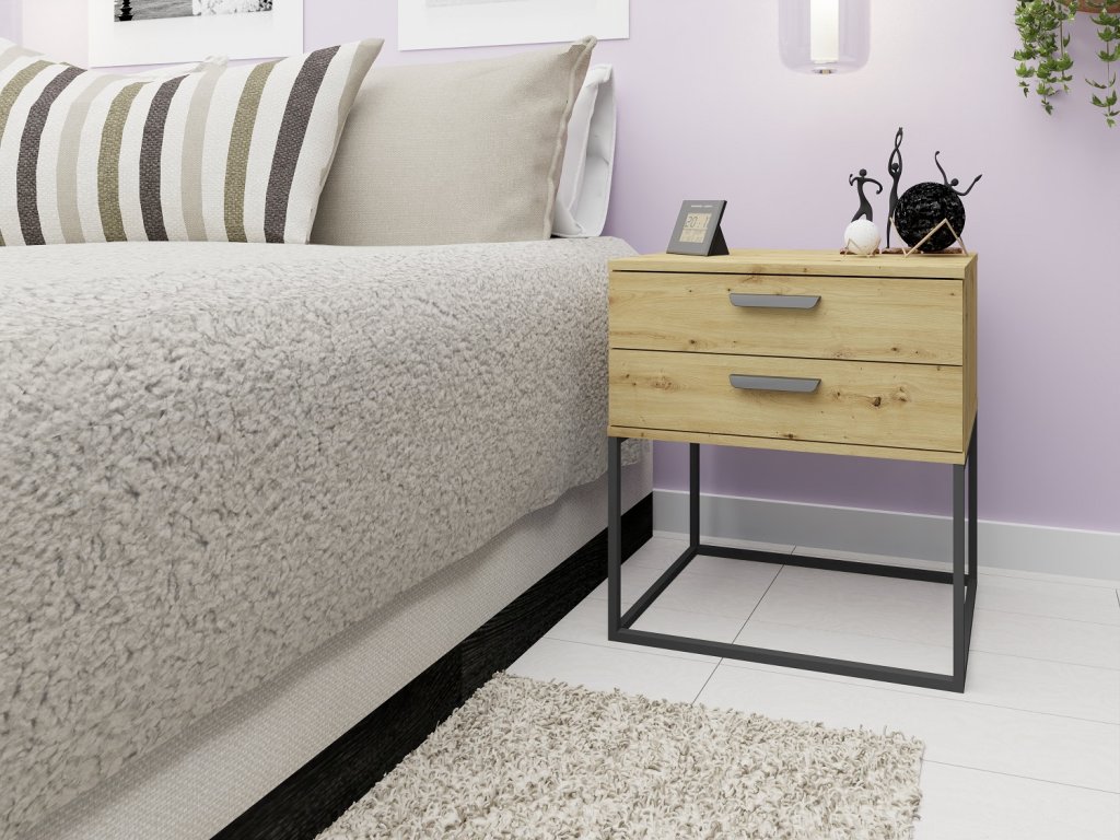 Originální noční stolek s kovovou konstrukcí zaujme nejednoho uživatele. Je vyroben z kvalitních LTD desek s ABS hranami. Je nenáročný na údržbu. Noční stolek disponuje dvěma praktickými šuplíky.