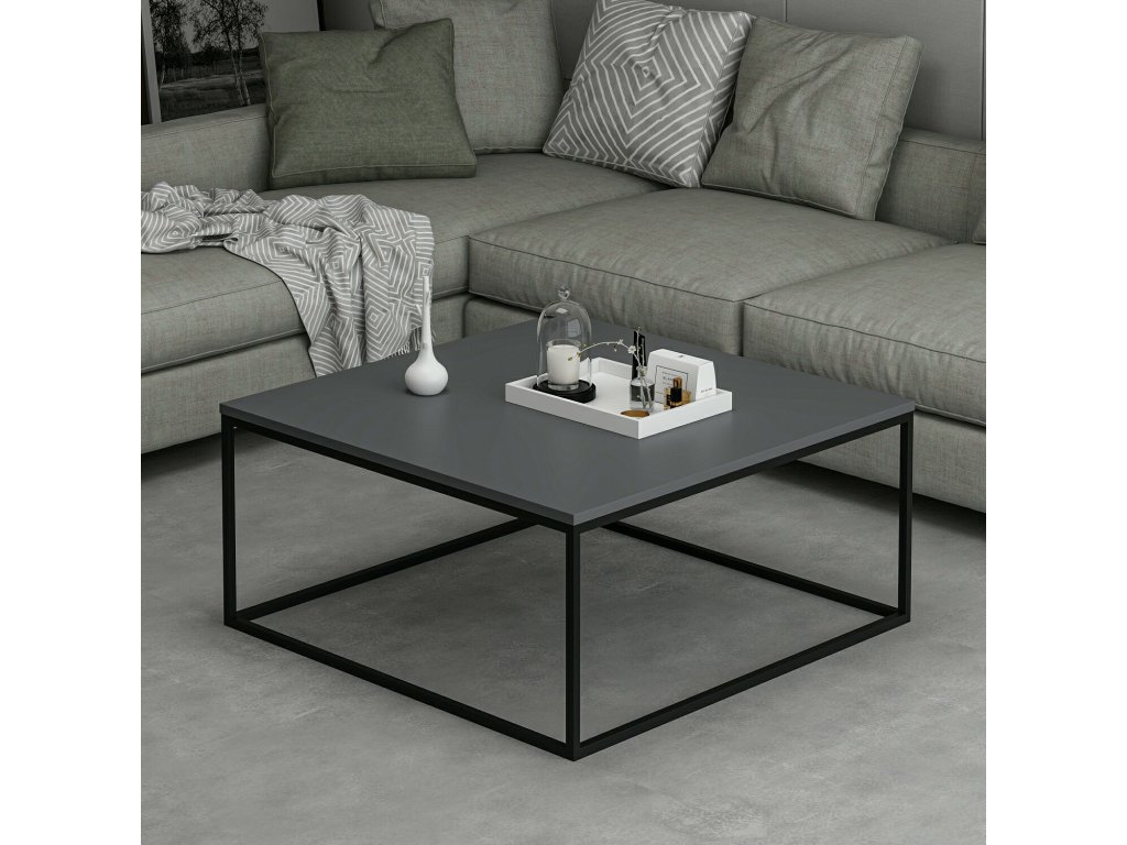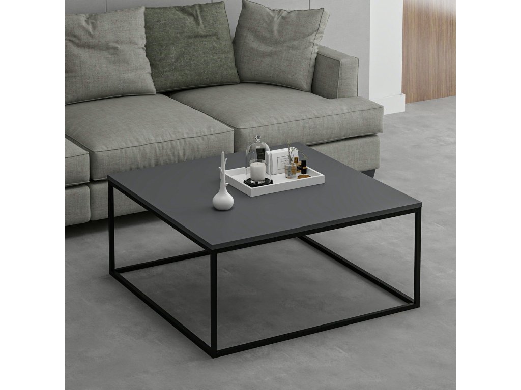 Konferenční stolek LATE kombinuje stylový vzhled a funkčnost, díky čemuž se stane ideálním doplňkem vašeho obývacího pokoje. Čtvercový tvar, kombinace antracitové a černé barvy a kovové nohy dodávají stolku moderní a elegantní vzhled, který se snadno přizpůsobí každému interiéru.
