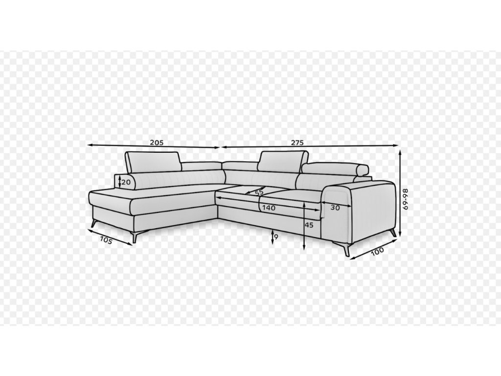 Rozměry sedačky: (š/v/h) 275 x 98 x 205 cm.