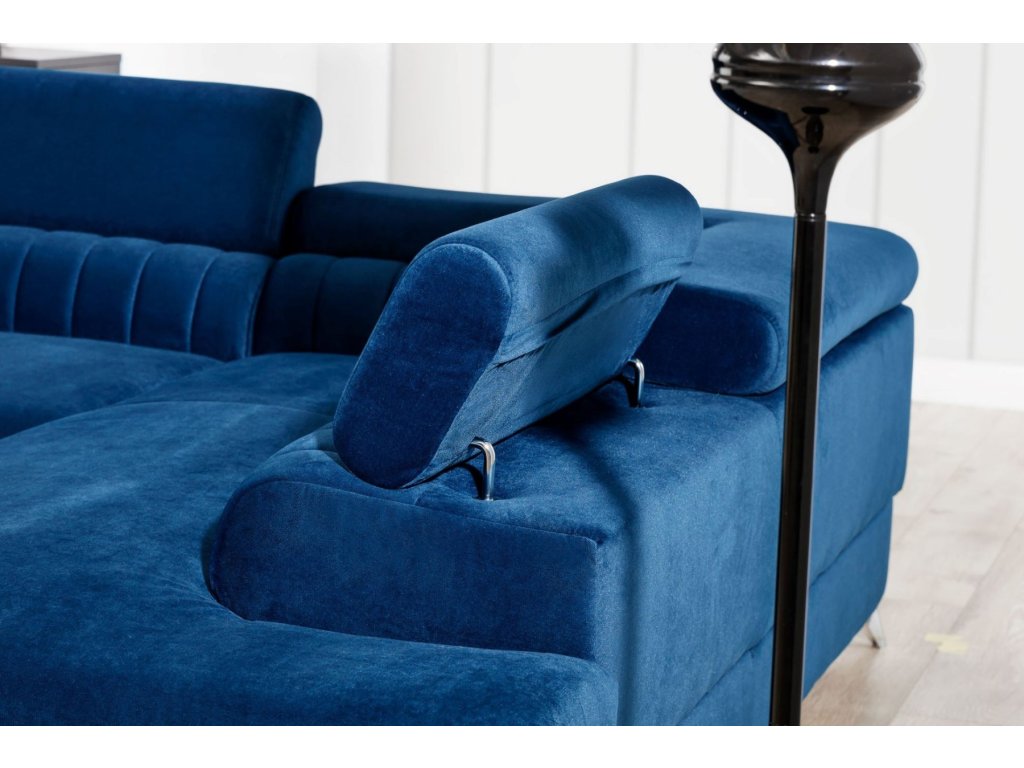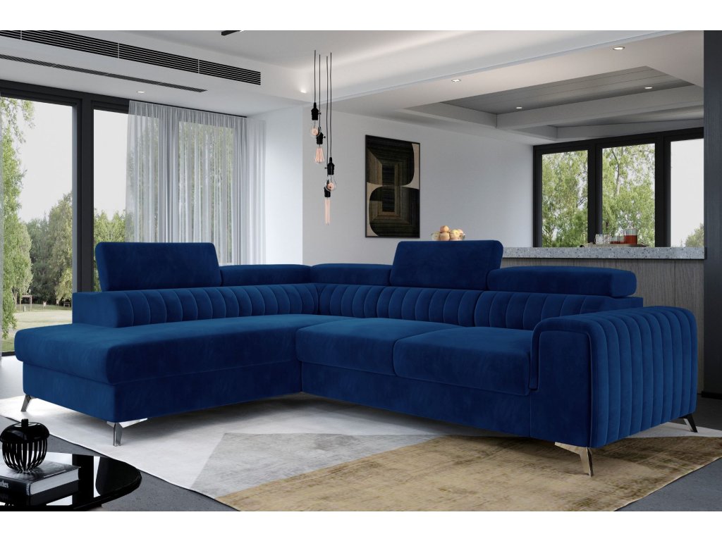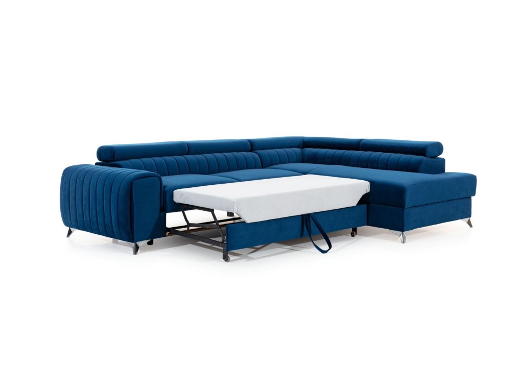 Rozkládací rohová sedací souprava LAURA je vytvořena pro ty, kteří oceňují jak komfort, tak design. Pokud hledáte rohovou sedačku, která je stejně designová i pohodlná, tato sedačka je přesně pro Vás. Elegantní široké područky, stříbrné nožičky a vertikální prošívání na opěradle představují zajímavý dekorativní prvek, který sedačce dodává eleganci a šmrnc.
