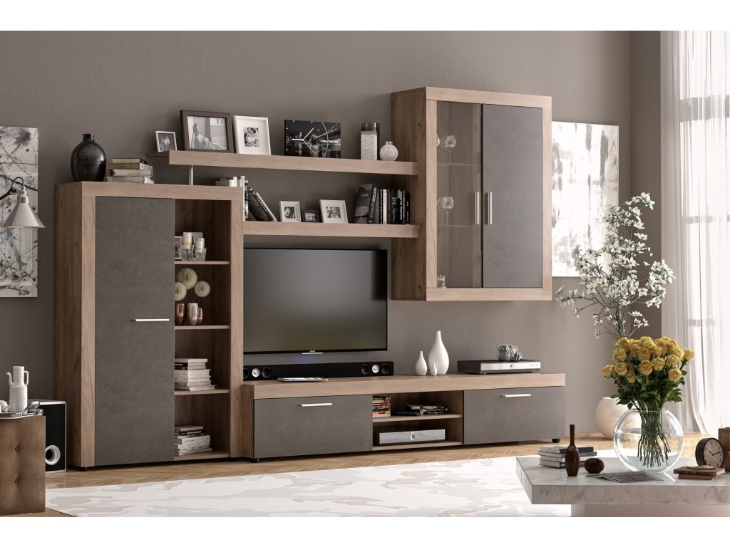| Sestava obsahuje: | televizní stolek: rozměry (ŠxVxH) 204 x 40 x 45 cm police: rozměry (ŠxVxH) 153 x 42 x 26 cm jednodveřová vitrína: rozměry (ŠxVxH) 89 x 141 x 34 cm závěsná vitrína: rozměry (ŠxVxH) 89 x 118 x 34 cm. |