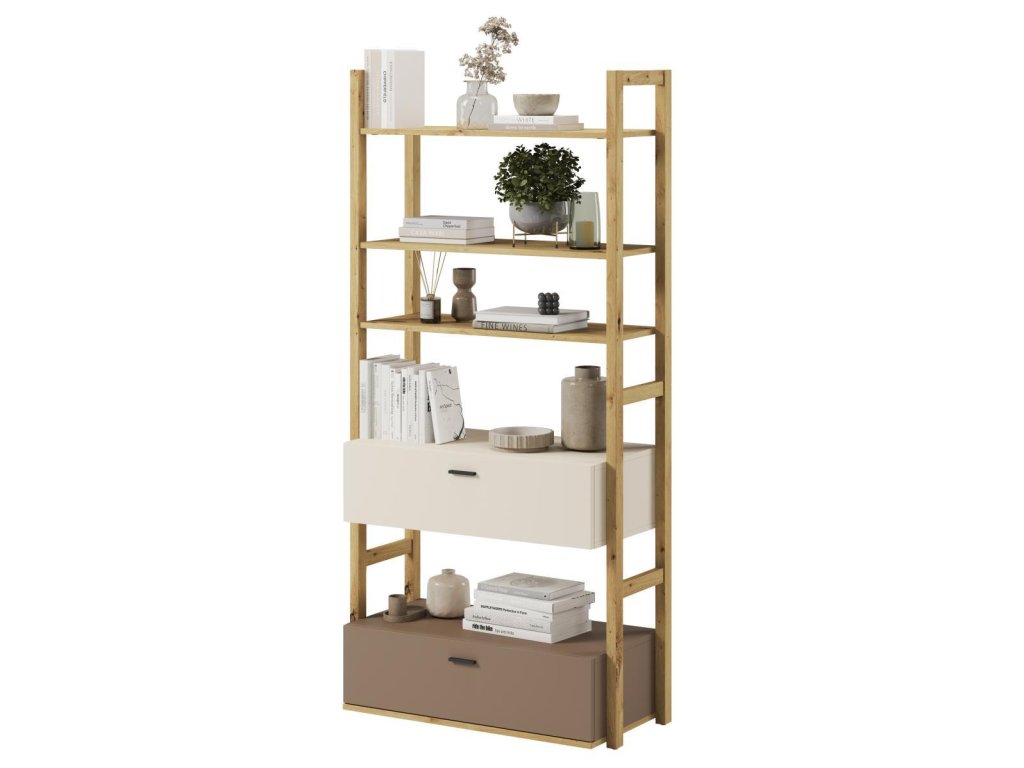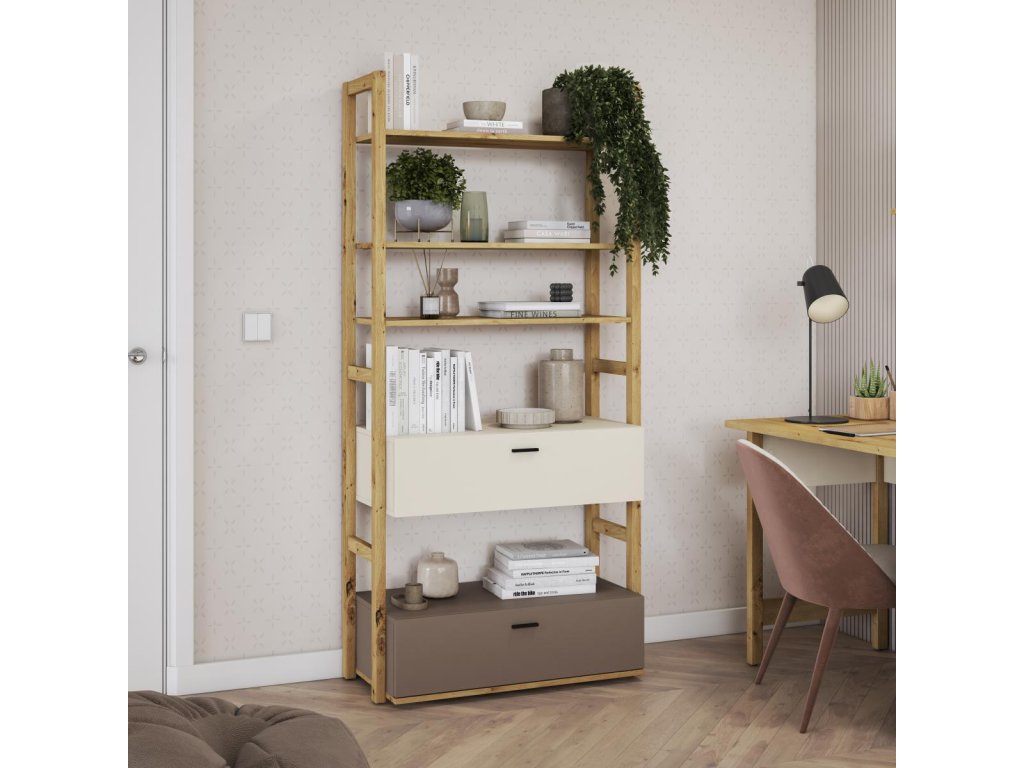 LENNY LY-02 regál se 2 zásuvkami 85 barva dub artisan/béžová/lanýž