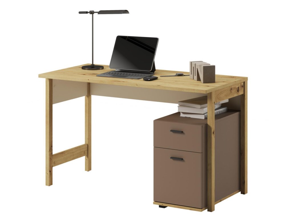 LENNY LY-04 pracovní stůl se 2 zásuvkami barva dub artisan/béžová/lanýž