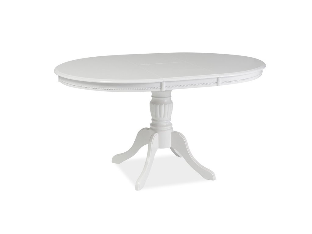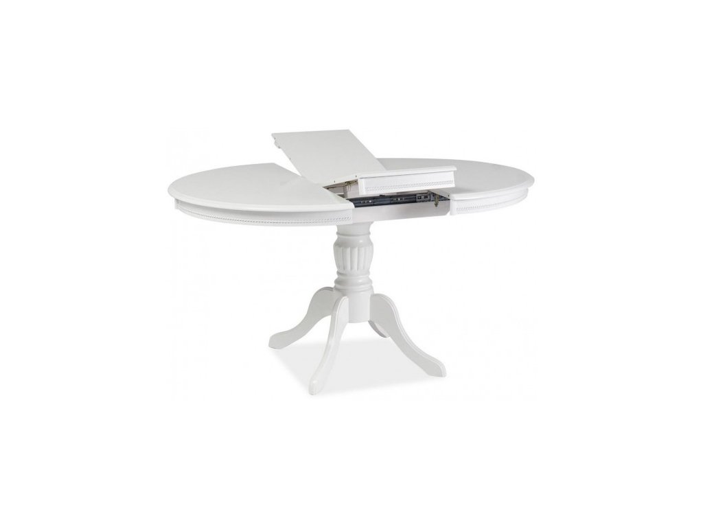 Jídelní stůl LESLEY je navržen s nádechem rustikálnosti. Stylové provedení nohou stolu je zvýrazněno jemným frézovaným vzorem. Nohy stolu jsou z masivu, v bílém barevném provedení. Deska stolu je z kvalitní MDF desky, ve stejném barevném odstínu. Stůl je kulatý o ploše 106 x 106 cm. Po rozložení je jeho plocha 141 x 106 cm. Rozměry (š,v,h): 106 - 141 x 76 x 106 cm. Ke stolu si můžete z naší nabídky vybrat z více typů jídelních židlí a vytvořit si tak elegantní jídelnu. Dodáváme v demontu.Doplňkové parametry
