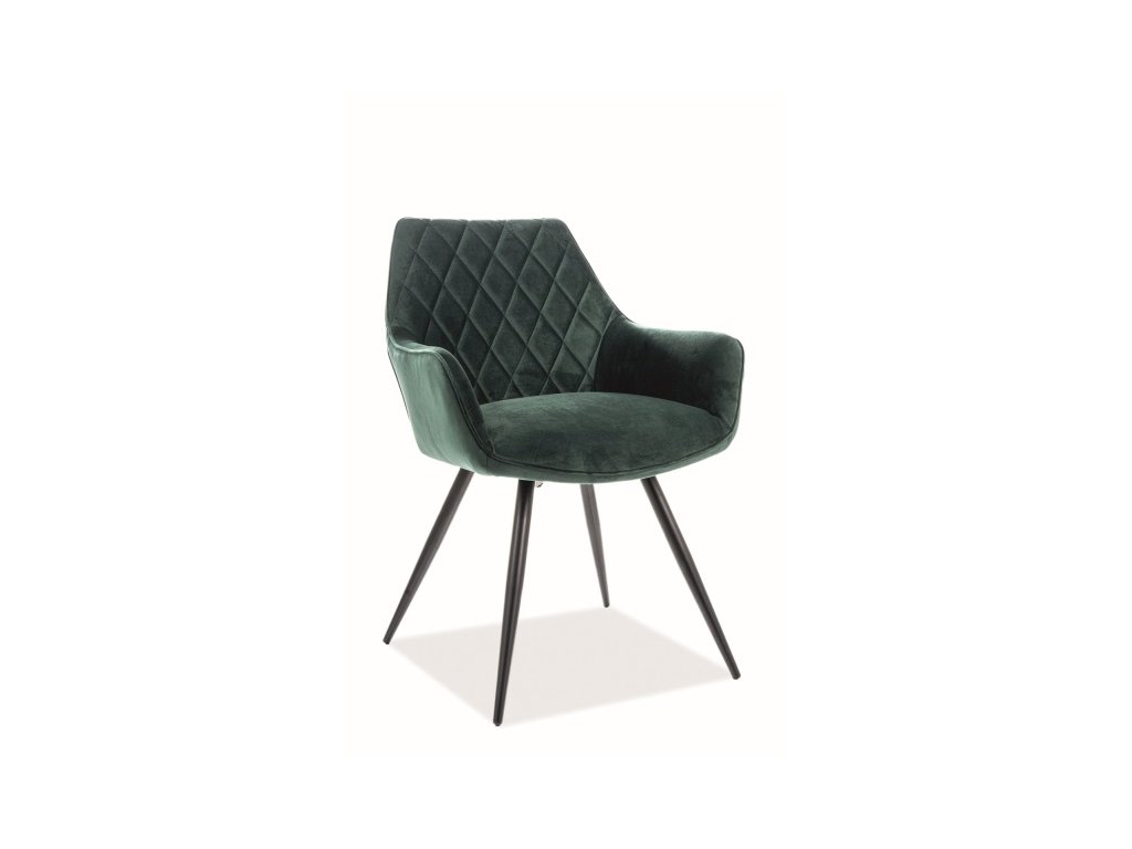 Židle LEWE je čalouněna kvalitní sametovou látkou BLUVEL 78, zelené barvy. Nožičky jsou kovové, v černém barevném provedení.