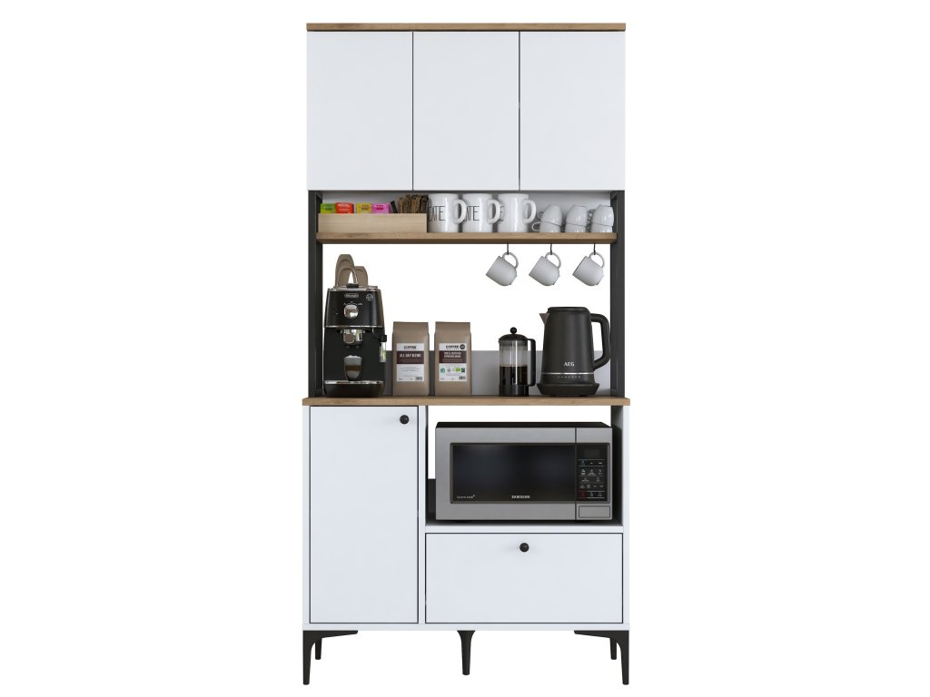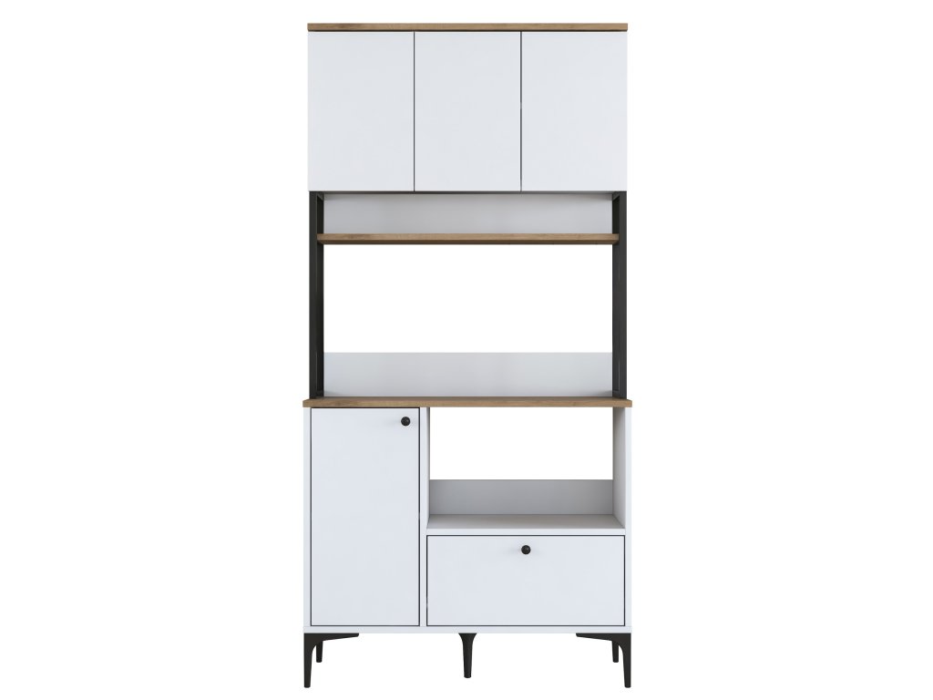 Skříň LIBERO poskytuje dostatek úložného prostoru díky čtyřem plným dvířkům, praktické zásuvce a regálku, který umožňuje snadný přístup k často používaným předmětům. Horní část je ideální pro umístění mikrovlnné trouby nebo dalších kuchyňských spotřebičů.