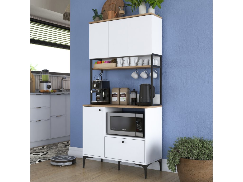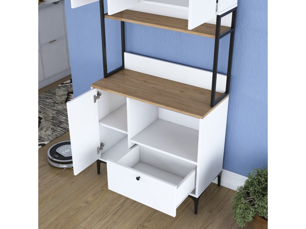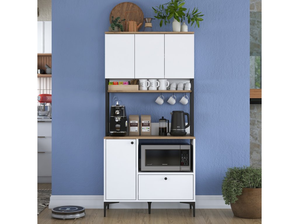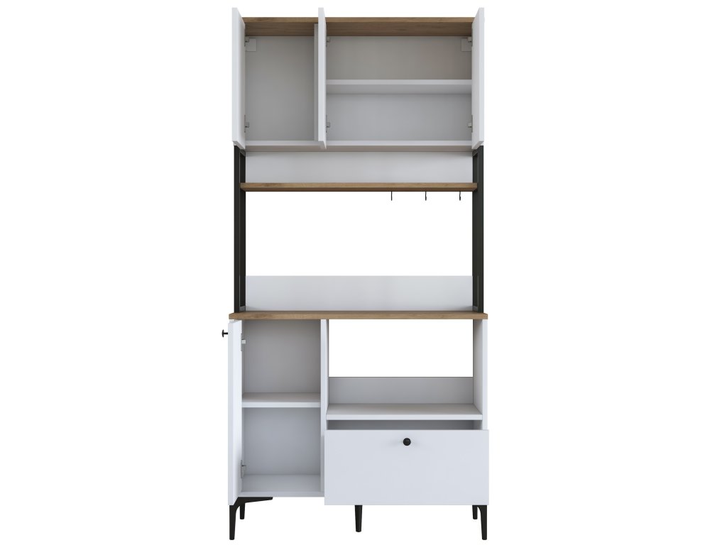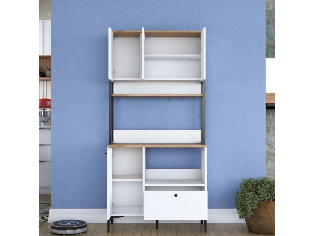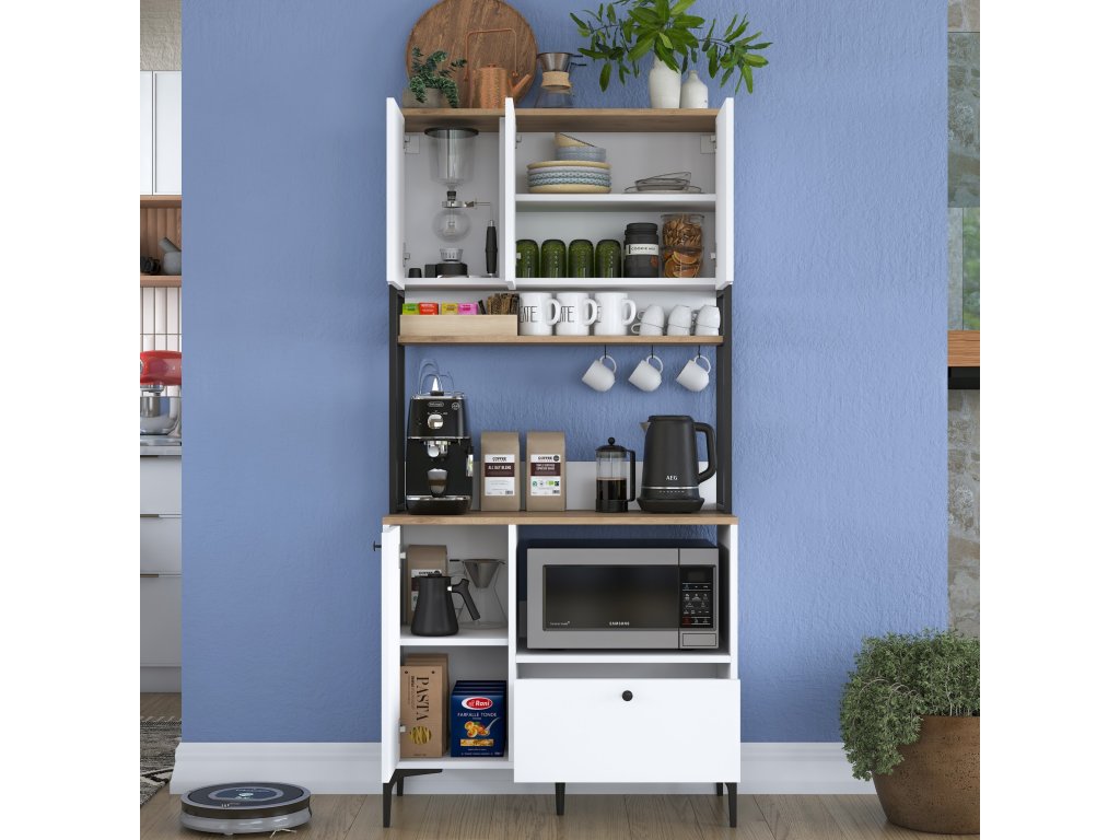 Policová skříň LIBERO je víceúčelovým doplňkem, který dokonale spojuje funkčnost a moderní design. Díky kombinaci bílé barvy a ořechového dekoru přináší do vaší kuchyně eleganci a praktičnost.