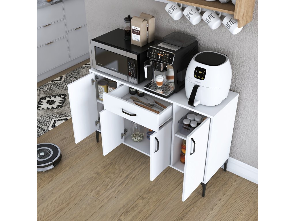 Kuchyňská skříňka LIBRETO nabízí praktické uspořádání úložného prostoru. Obsahuje čtyři plná dvířka pro bezpečné uložení vašich kuchyňských potřeb, zásuvku na drobné předměty a odkládací polici s věšákem, která je ideální pro zavěšení utěrek nebo kuchyňských nástrojů.
