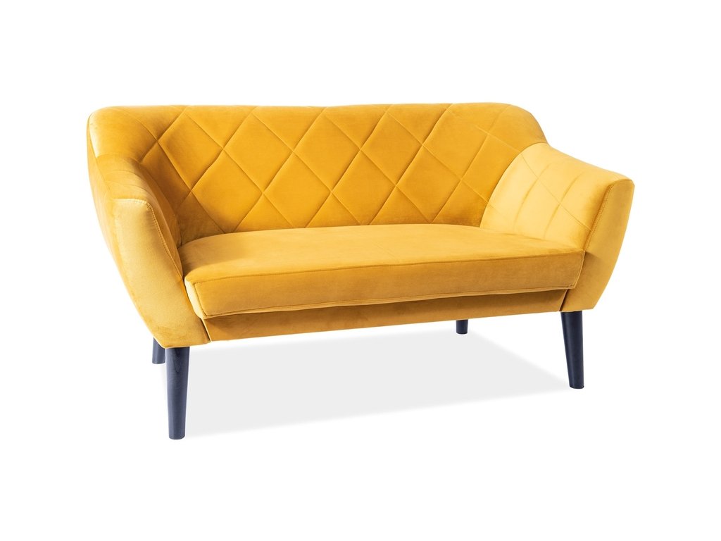 Je čalouněna kvalitní sametovou látkou Bluvel 68 ve žluté barvě. K pohovce si můžete dokoupit také křeslo LIFE, které naleznete v naší nabídce. Pohovka má vysoké dřevěné nožičky, které jsou v barvě wenge.
